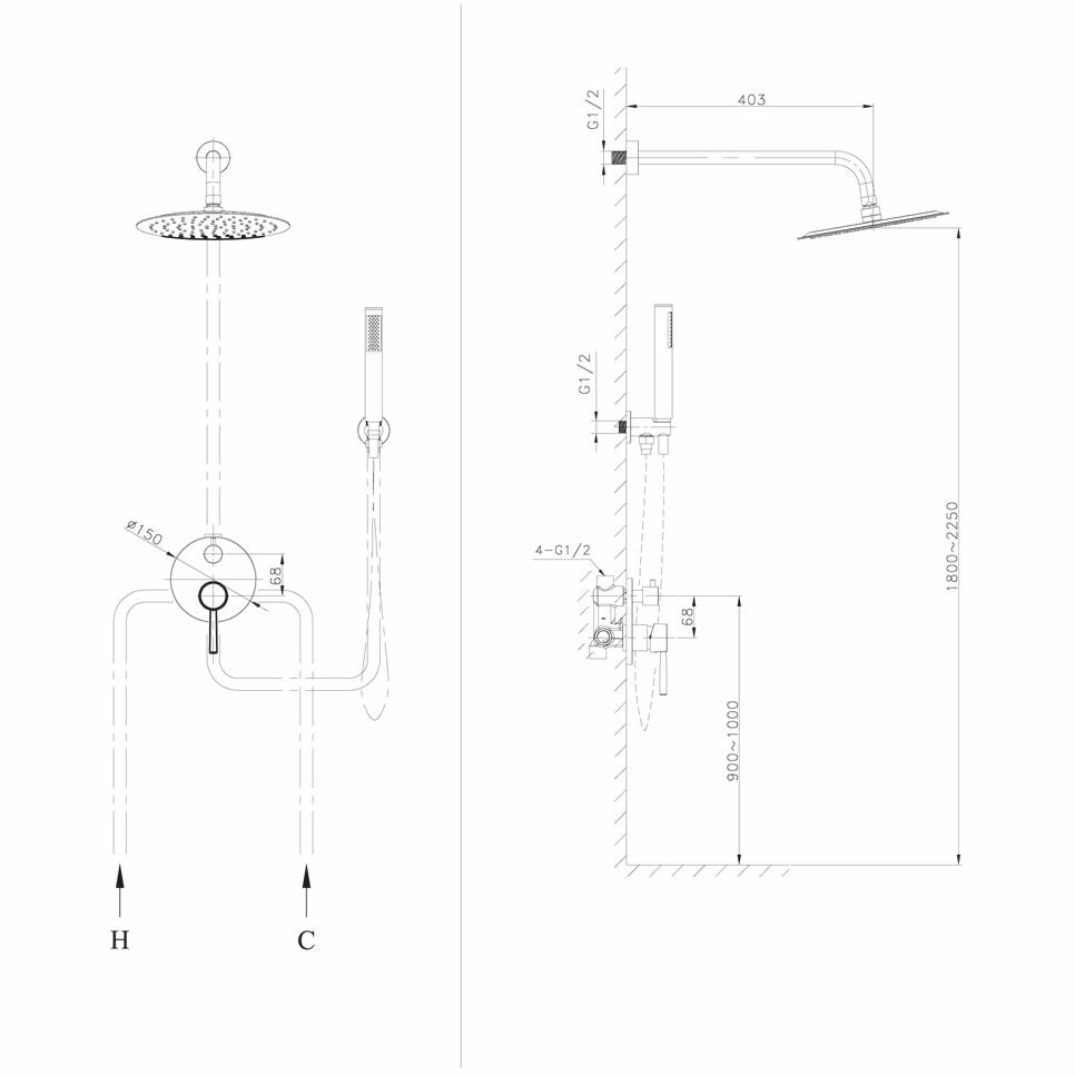 | Размер верхнего душа, мм | 250 |