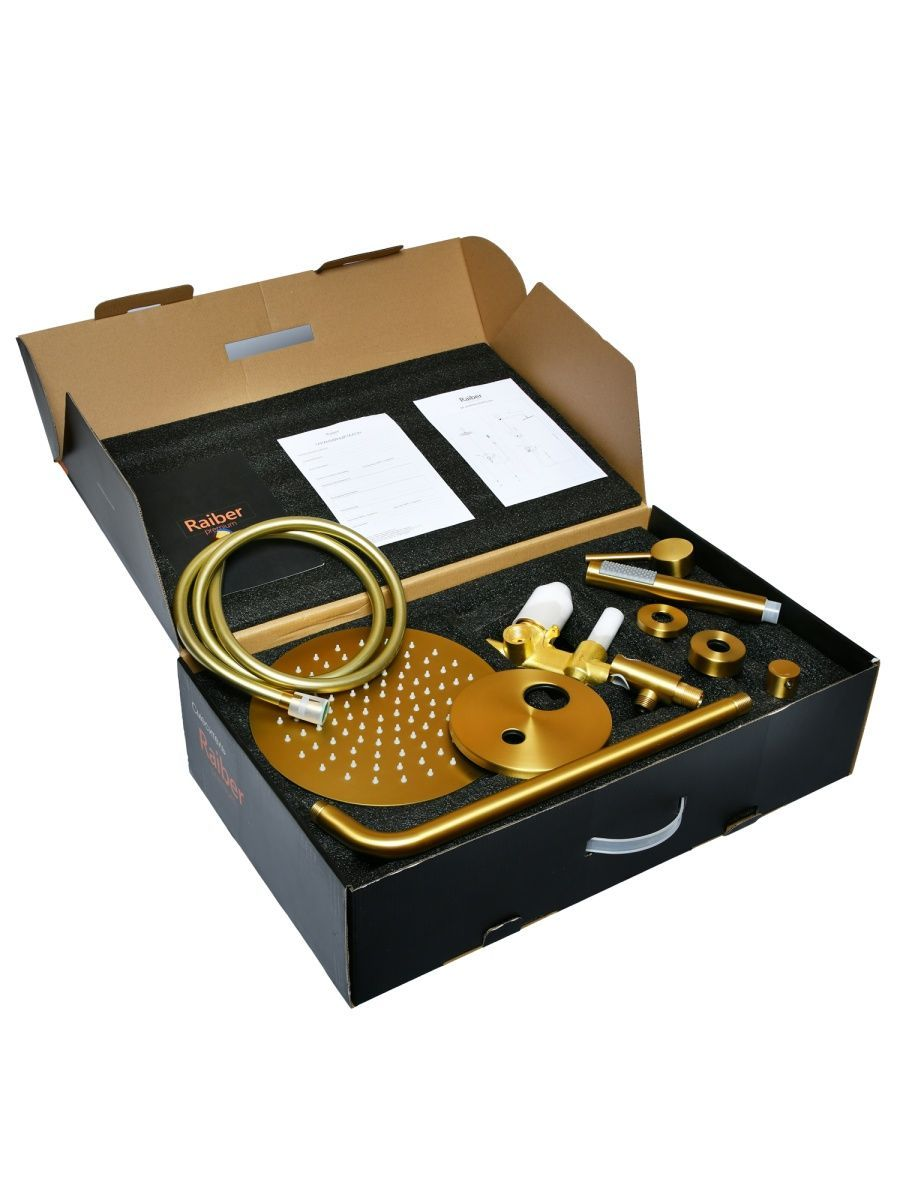 Душевой набор Raiber Graceful RPG-005. Новая линейка смесителей Raiber олицетворяет собой скандинавский стиль. Вы можете легко сочетать превосходную функциональность с материалами, цветами и аксессуарами, которые отражают вашу индивидуальность и атмосферу,создаваемые вами в своем доме. Смеситель, внутренняя часть, кронштейн верхнего душа, шланговое подключение, верхний душ, душевая лейка, шланг.