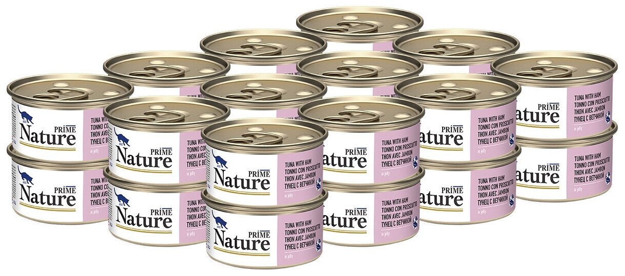 PRIME NATURE Корм влаж.тунец с ветчиной в желе д/кошек конс.85г (137.6.1128)