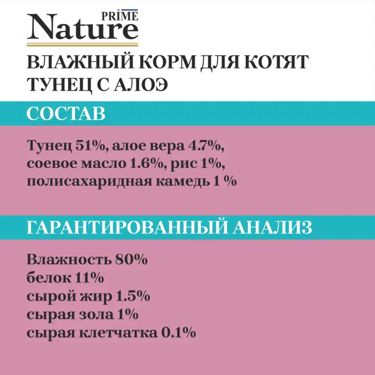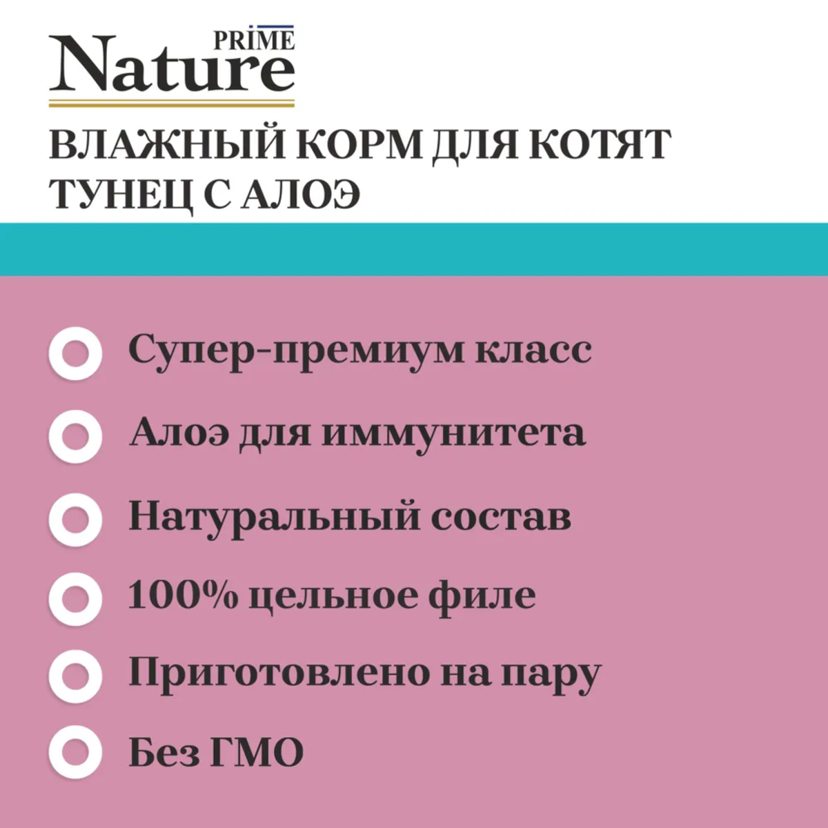Prime Nature – 100% натуральная линейка влажных кормов приготовленная на пару из свежих и высококачественных ингредиентов. Супер-премиум корма для кошек, в составе которых волокна (филе) мяса и рыбы, отобранные вручную. Рыба выловлена в открытом море, курица, выращенная без гормонов.