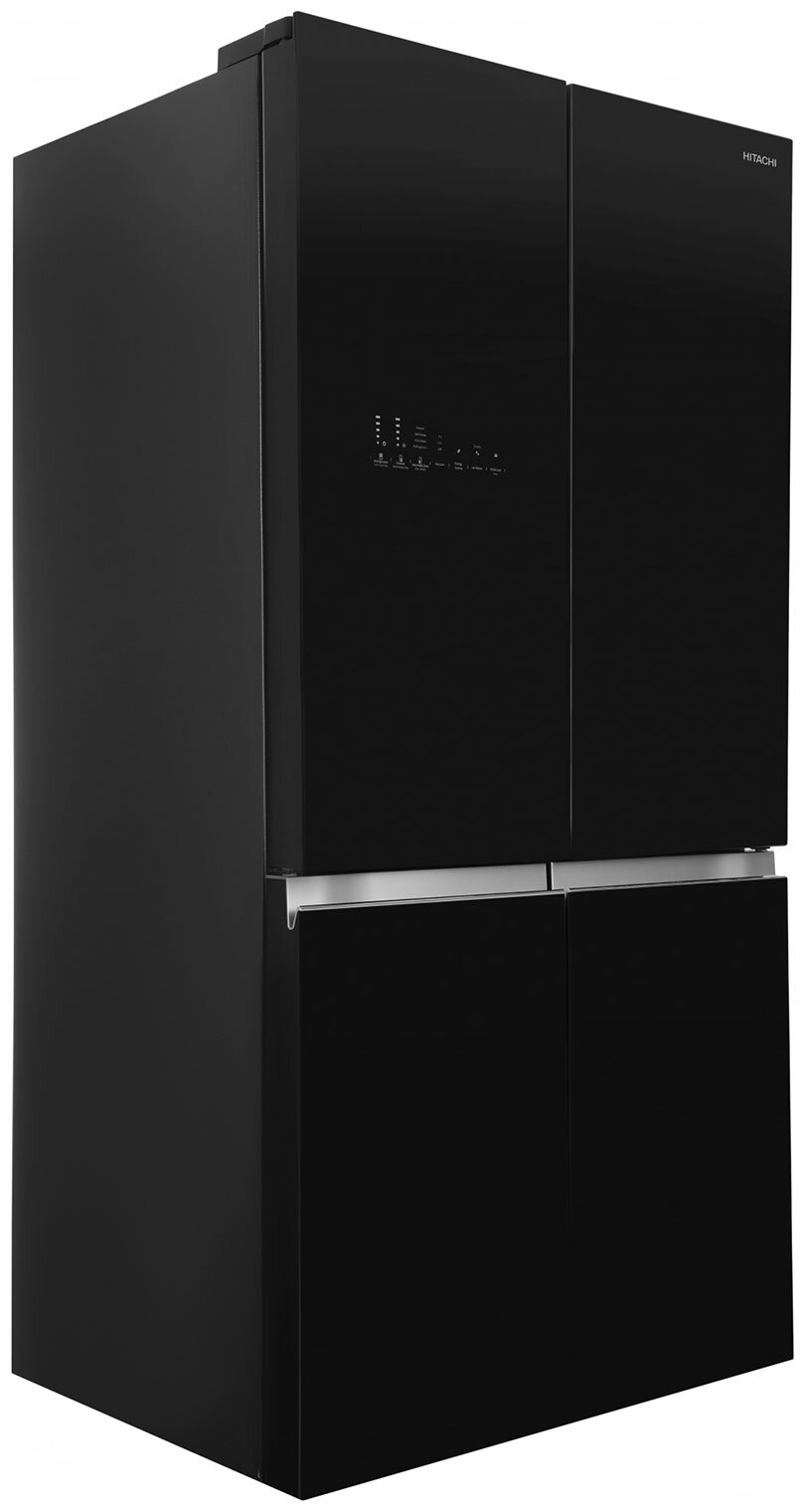 Холодильник Hitachi R-WB720VUC относится к двухкамерным агрегатам большого объема. Вместительная модель объемом 568 л рассчитана на большую семью, способна сохранять свежие продукты для 5–7 человек. Изысканный стеклянный фасад черного цвета украсит любую кухню. Габариты немалые: ширина – 90 см, глубина – 72 см, высота – 184 см. Нижнее расположение морозилки удобное для пользования даже при такой высоте холодильника. У агрегата 4 двери, что позволяет, открывая холодильник, лучше сохранять температуру внутри.