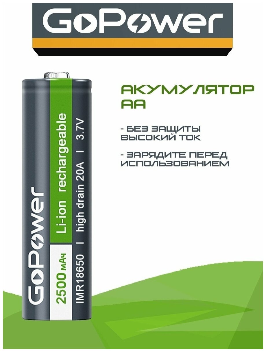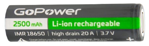Аккумулятор Li-ion GoPower 18650 BL1 3.7V 2500mAh без защиты выс.конт. (1/6/120) Аккумулятор Li-ion GoPower 18650 без защиты с высоким контактом (00-00018355)