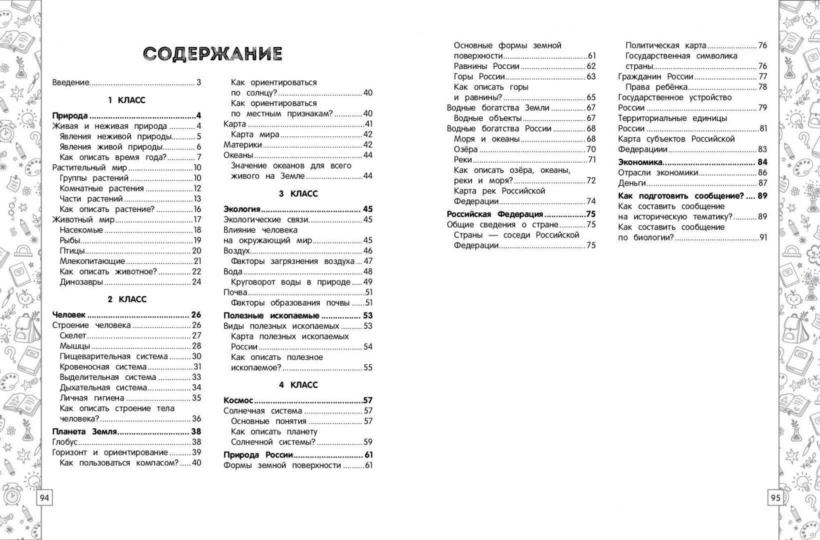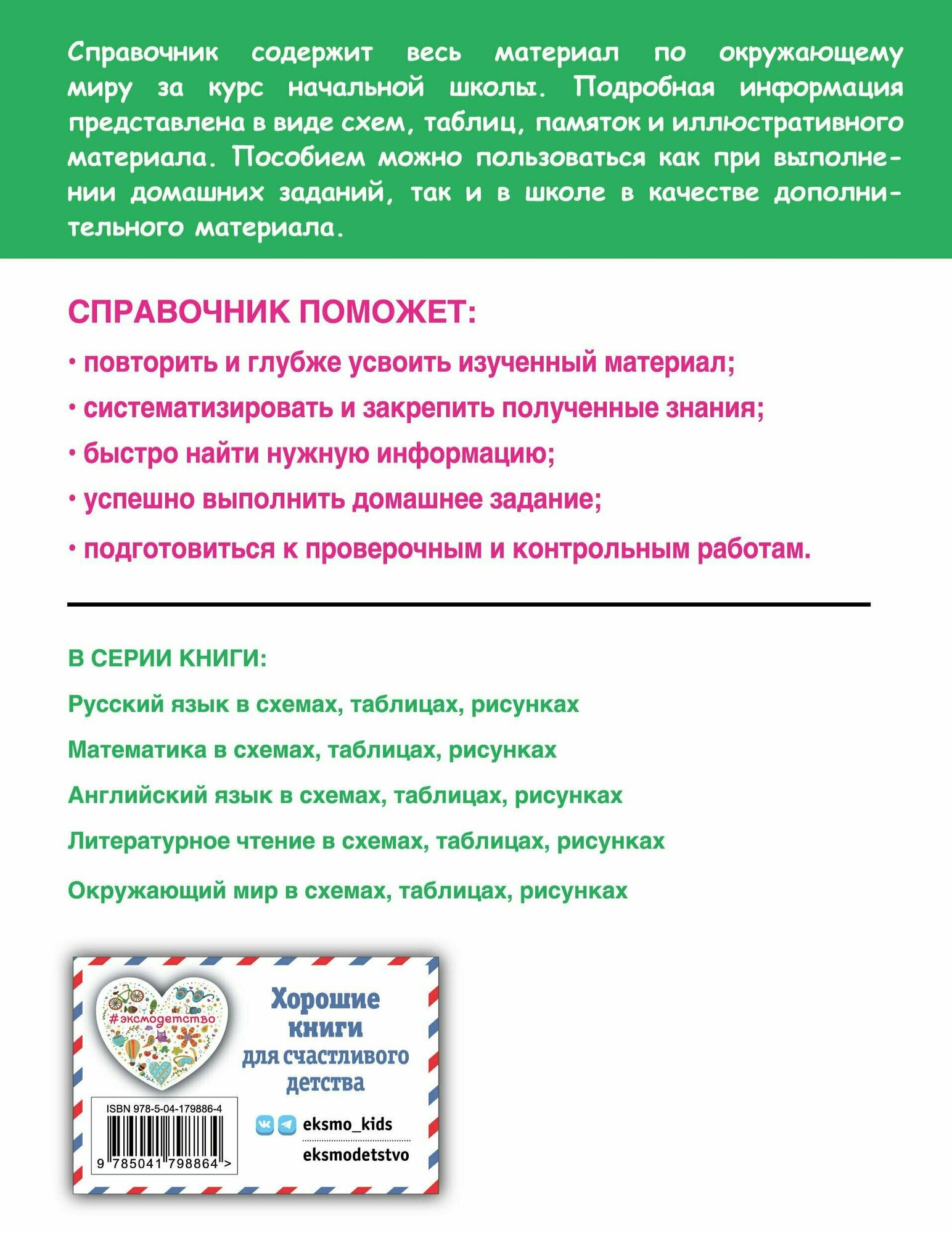 В справочнике представлен весь материал по окружающему миру за курс начальной школы в наглядной и доступной форме — в виде таблиц, схем и рисунков. С его помощью ученик сможет систематизировать свои знания, повторить и закрепить пройденный материал, дополнительно проработать проблемные темы, подготовиться к самостоятельным и контрольным работам, а также к итоговой аттестации за курс начальной школы по окружающему миру.