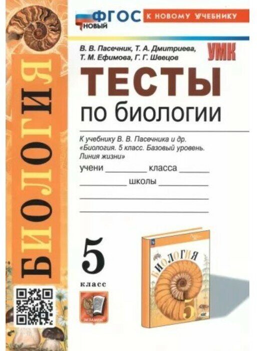 Биология. 6 класс. Тесты к учебнику В. В. Пасечника и др. ФГОС (Пасечник Владимир Васильевич; Ефимова Татьяна Михайловна; Дмитриева Татьяна Андреевна; Швецов Глеб Геннадьевич); Экзамен, 2023