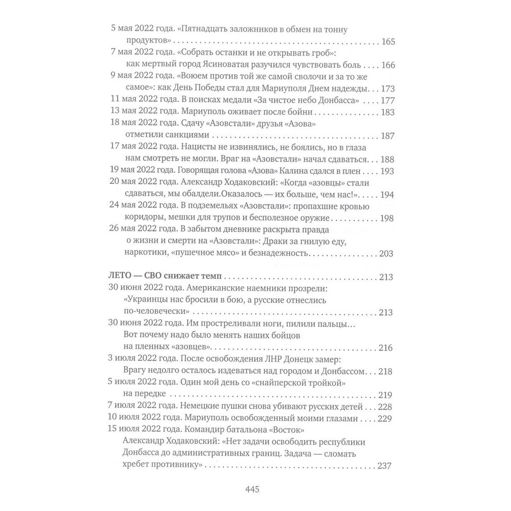 Чудесная книга на самом деле. Как потерявшая близкого человека на сво благодарна автору за неё. Своего рода летопись специальной военной операции. Купила, чтобы запомнить всё как было, чтобы и сыну в будущем рассказать, как все было на самом деле. Очень нравится, что расписано всё по дням: признание днр и лнр, утро, в которое объявлена сво, Мариуполь, утро сентября, когда объявлена мобилизация.. всё это должно жить в нашей памяти как и события ВОВ.