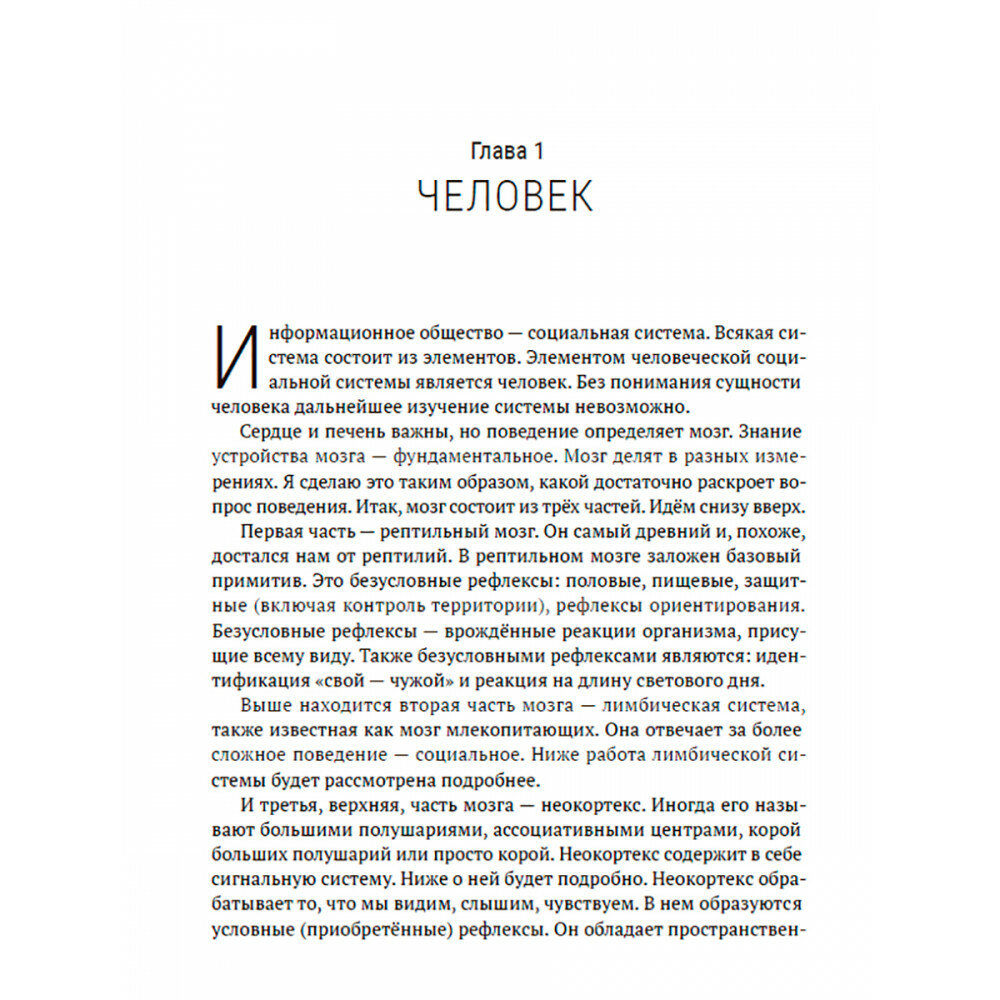 Всесторонний анализ современного общества, большое количество наглядных примеров и интересных параллелей, обращение к событиям прошлого для прогнозирования будущего — вот отличительные черты стиля автора. Читатель вспомнит основные принципы построения общества в разное время у разных народов, узнает, как проводят информационную обработку граждан и каким образом этому можно противостоять, и даже, возможно, найдёт ответ на вопрос о том, является ли наша страна сверхгосударством.