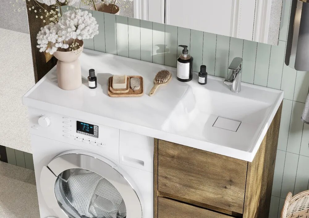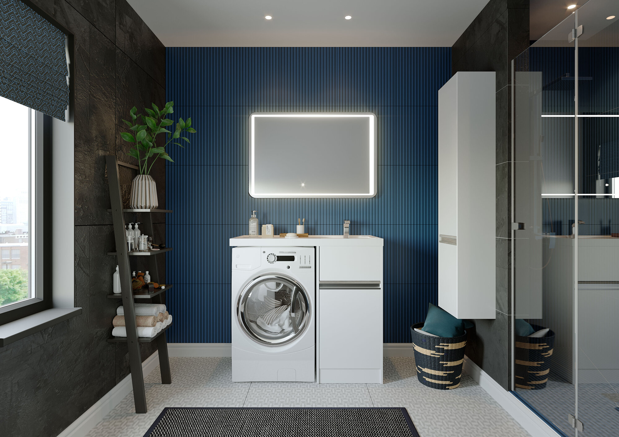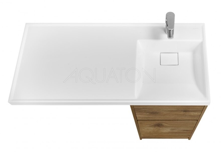 Комплект мебели для ванной комнаты AQUATON 1A2360K1LH010 - это отличное решение для создания идеального интерьера в вашей ванной! Компактный размер данного комплекта, включающего в себя напольную тумбу AQUATON 1A236001LH010 и раковину AQUATON Лондри 105 1A72833KLH01L, подойдет для небольших ванных комнат и обеспечит место для хранения необходимых предметов и аксессуаров. Тумба напольная AQUATON под стиральную машину выполнена из влагостойкой ламинированной плиты и окрашена в белоснежный цвет с высокой степенью глянца полиэфирной краской ультрафиолетового отверждения. Данный способ окрашивания обеспечивает изделию привлекательный внешний вид, а также износостойкость и долговечность. Верхний ящик узкой тумбы в ванну Акватон открывается с помощью системы push-to-open, а нижний - за изящную удобную профильную хромированную ручку. Над ручкой установлена вставка из влагостойкой ламинированной плиты благородного цвета дуб наварра. Ящики выдерживают нагрузку до 25 кг. Тумба установлена на регулируемые опоры, которые находятся за цоколем. Современный уникальный дизайн раковины для ванны AQUATON Лондри 105 белого цвета и ее практичность - идеальное решение для маленьких санузлов! Экономит место и делает пространство ванной комнаты более полезным. Раковина выполнена из высококачественного экологичного материала, который состоит из мраморной крошки в сочетании с полиэфирным смолами. Покрытие Gelcoat, полимер высокой прочности, защищает поверхность изделия от химического и механического воздействия, не подвластен влиянию уф-лучей. Это придает изделию блеск и возможность полного восстановления поверхности, устраняя потёртости и царапины, возникшие в процессе эксплуатации. Литой мрамор (или искусственный камень) является композицией из современных экологически чистых материалов, состоящих из природного молотого мрамора (~ 80%) и полиэфирной смолы (~ 20%), с добавлением специальных пигментов и красителей. Восхитительный дизайн и легкость в уходе делают комплект мебели для ванной комнаты AQUATON отличным решением для вашего стильного интерьера!