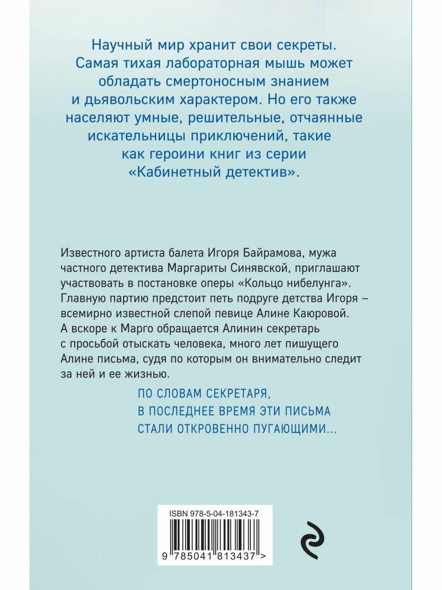 Артиста балета, известного Игоря Байрамова, мужа частного детектива Маргариты Синявской, приглашают участвовать в постановке оперы «Кольцо Нибелунга». Главную партию предстоит петь подруге детства Игоря — всемирно известной слепой певице Алине Каюровой. А вскоре к Марго обращается Алинин секретарь с просьбой отыскать человека, много лет пишущего Алине письма, судя по которым он внимательно следит за ней и ее жизнью. По словам секретаря, в последнее время эти письма стали откровенно пугающими...
