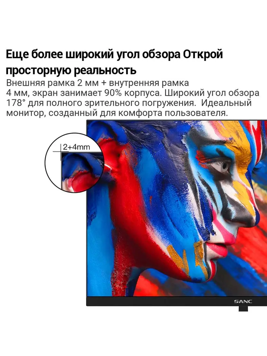 Внешняя рамка 2 мм + внутренняя рамка 4 мм, экран занимает 90% корпуса. Широкий угол обзора 178° для полного зрительного погружения. Идеальный монитор, созданный для комфорта пользователя.