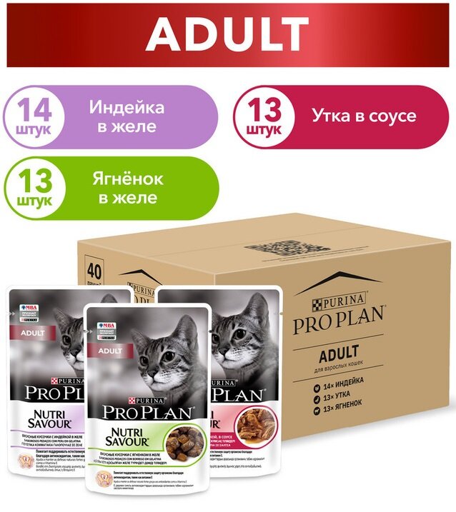 Pro Plan ® Корм влажный (мультипак) для кошек: с индейкой в желе ягненком в желе и уткой в соусе 40х85 гр.