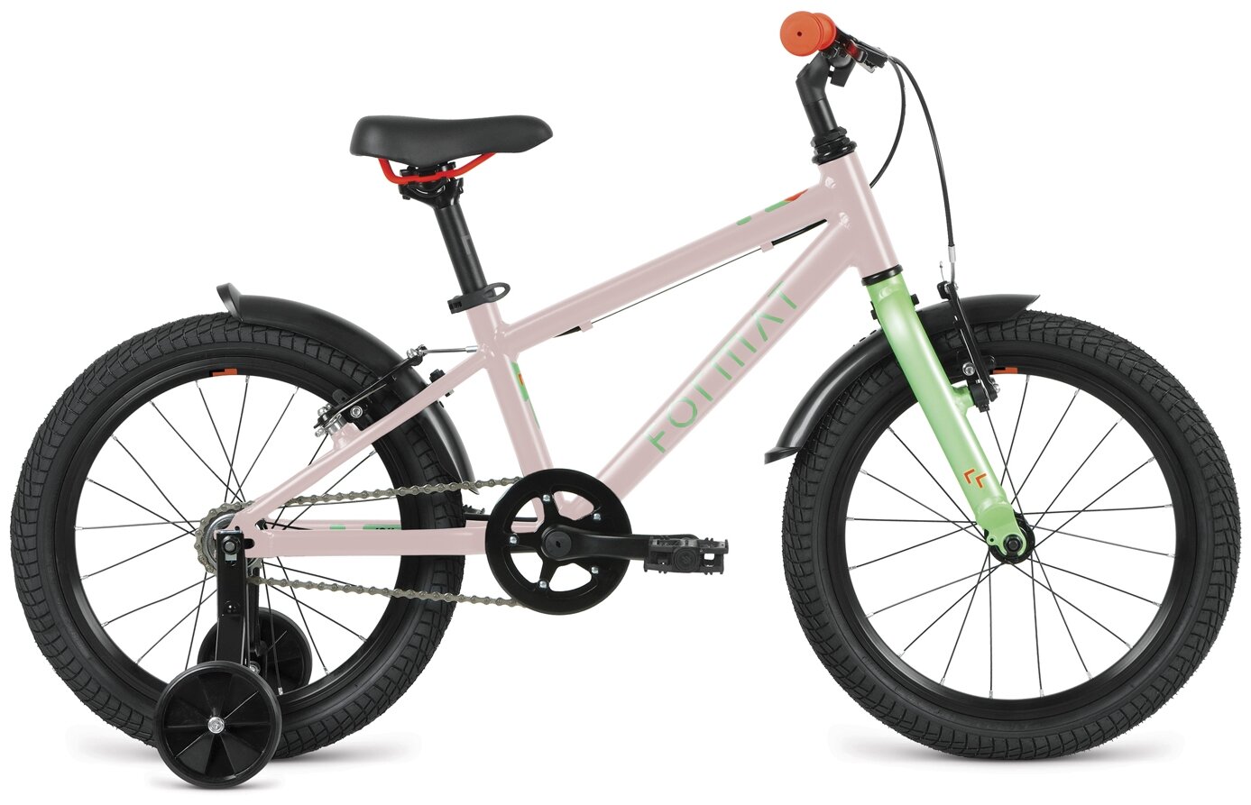 Пара балансировочных колес подстрахует райдера, который еще не научился держать равновесие самостоятельно. Синглспид Формат Кидс 18 оснащен простыми и безопасными для ребенка ободными тормозами. Его геометрия проектировалась на основе данных антропометрии детей 6-9 лет.