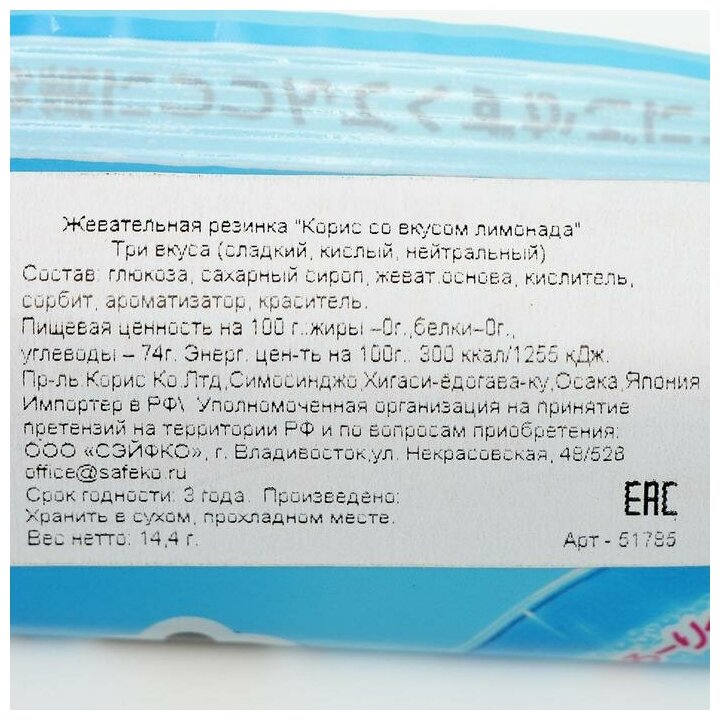 | Состав | сахар, глюкоза, жевательная основа, ароматизатор идентичный натуральному |