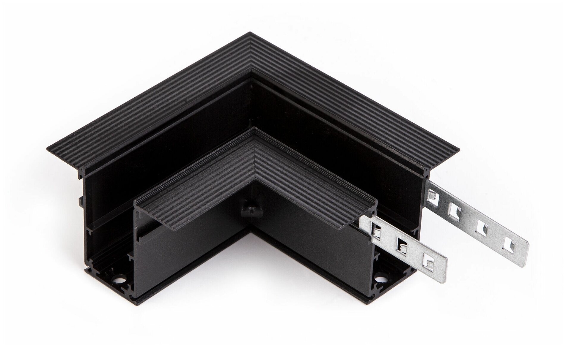 Коннектор угловой для встраиваемого шинопровода Электростандард Slim Magnetic 85092/11 черного цвета. Коннектор используется для поворота линии участков трековой системы. Корпус коннектора изготовлен из металла, который легко выдерживает перепады температуры, вибрацию и механические воздействия. Угловой коннектор для трековых светильников не требует использования дополнительного оборудования, устройств при монтаже и обеспечивает надежное электрическое соединение шинопроводов. Серия Slim Magnetic – это тренд интерьерного освещения. Это доступная и простая в использовании система трековых светильников и комплектующих. Использование комбинации защелок и магнитных элементов позволяет с легкостью менять конфигурацию светильников по всей длине трековой системы. В серии магнитной трековой системы Slim Magnetic представлены подвесные, накладные и встраиваемые шинопроводы, а также светильники: линейные, споты, поворотные и подвесные. Широкий ассортимент комплектующих позволяет создавать различные схемы освещения, в том числе переходы из одной плоскости в другую.