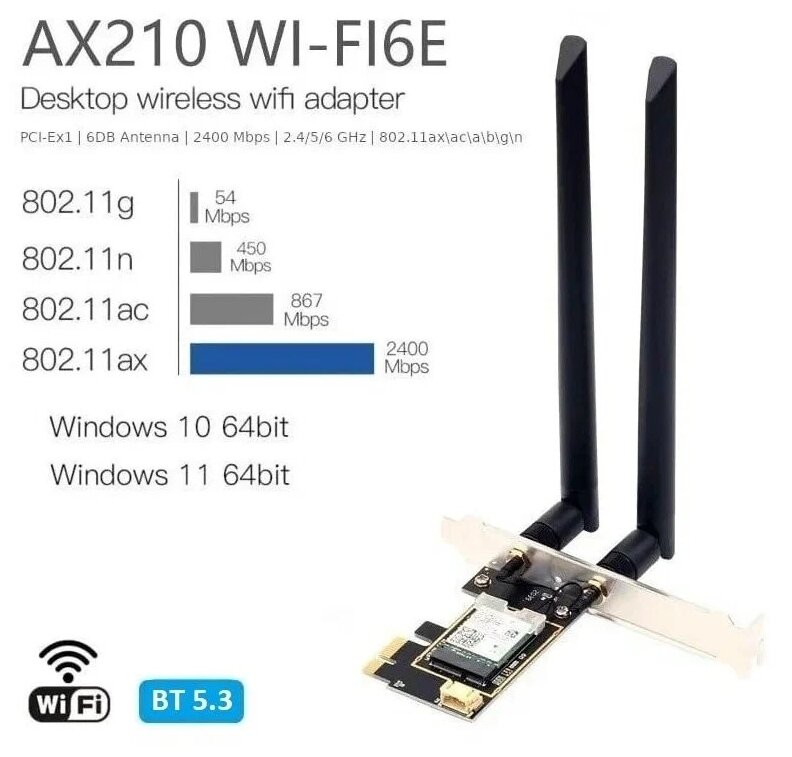 На сегодняшний день товар «Адаптер беспроводных локальных сетей Intel® Wi-Fi 6E AX210 (Gig+) (AX210NGW) PCIE M.2 AX210.NGWG INTEL M.2 E Key 2230 2x2 AX+BT (Wi-Fi(PCIe) BT(USB))» можно купить с кешбеком в 1 магазине: E2e4online