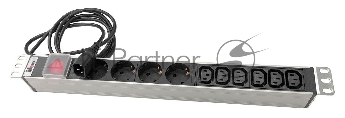 Блок распределения питания Rem R-10-4S-6C13-V-440-1.8, горизонтальное размещение, 4xSchuko 6xC13, базовые, 10A, C14, 1.8м