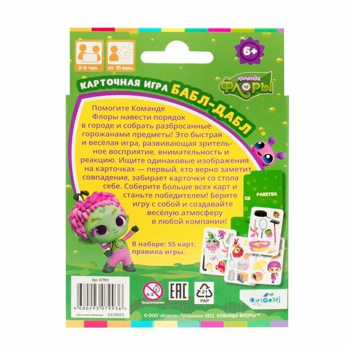 Помогите Команде Флоры навести порядок в городе и собрать разбросанные горожанами предметы! Это быстрая и весёлая игра, развивающая зрительное восприятие, внимательность и реакцию. Ищите одинаковые изображения на карточках - первый, кто верно заметит совпадение, забирает карточки со стола себе. Соберите больше всех карт и станьте победителем! Бери игру с собой и создавай весёлую атмосферу в любой компании!