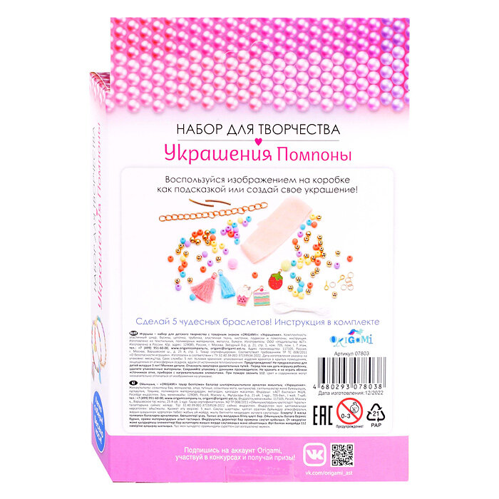 Набор для творчества. Украшения своими руками. Помпоны. Сладкое настроение ОРИГАМИ