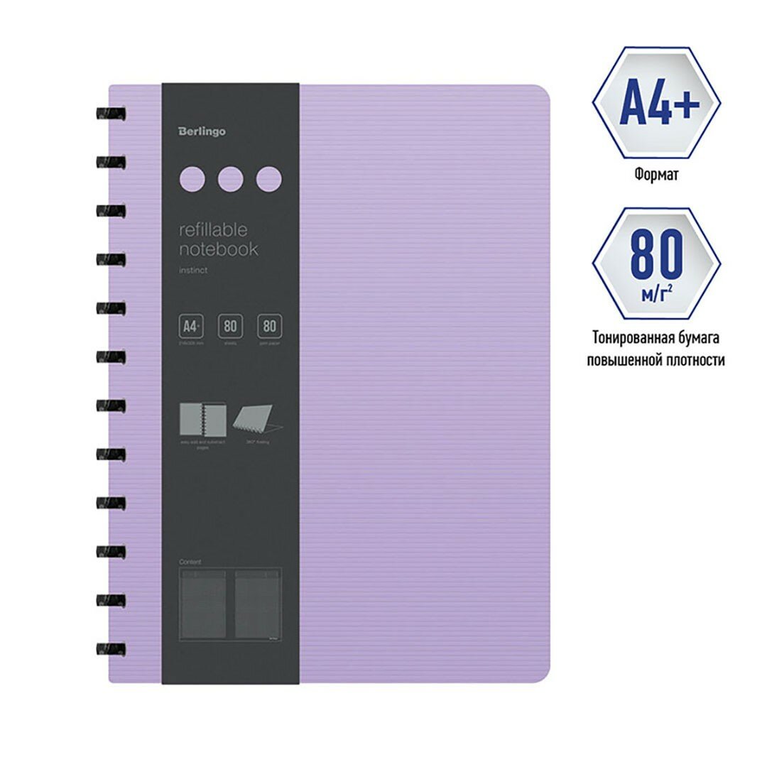 Бизнес-тетрадь Berlingo "Instinct" - это практичное, стильное и современное изделие для планирования и записей. Такая бизнес-тетрадь является незаменимым инструментом для деловых людей. Увеличенная толщина обложки (1500мкм). Формат А4+. Насыщенный пастельный розовый цвет внешней стороны в сочетании с фактурой "горизонтальные линии". Черный цвет внутренней поверхности. Материал обложки - трехслойный пластик (полифом), надежно защищает внутренний блок от влаги, замятия и загрязнения, обложка устойчива к загрязнениям. Вид скрепления - стильные имиджевые черные кольца, с возможностью раскрывать тетрадь на 360 градусов. Возможна замена бумажного блока и быстрая и удобная выемка/вставка листов без повреждений. Бизнес-тетрадь содержит съемную брендированную линейку, которую можно использовать как закладку или разделитель и с легкостью можно перемещать в удобное место. Внутренний блок - высококачественная тонированная бумага, плотностью 80г/м2, 80 листов в клетку, рамка для заголовка, темы или даты, поля с обеих сторон блока на каждом листе, линовка на вылет. Размер бизнес-тетради 305х218 мм, диаметр колец 22мм. Упаковка в термоусадочную пленку позволяет предохранить листы от замятия и загрязнения в процессе транспортировки.