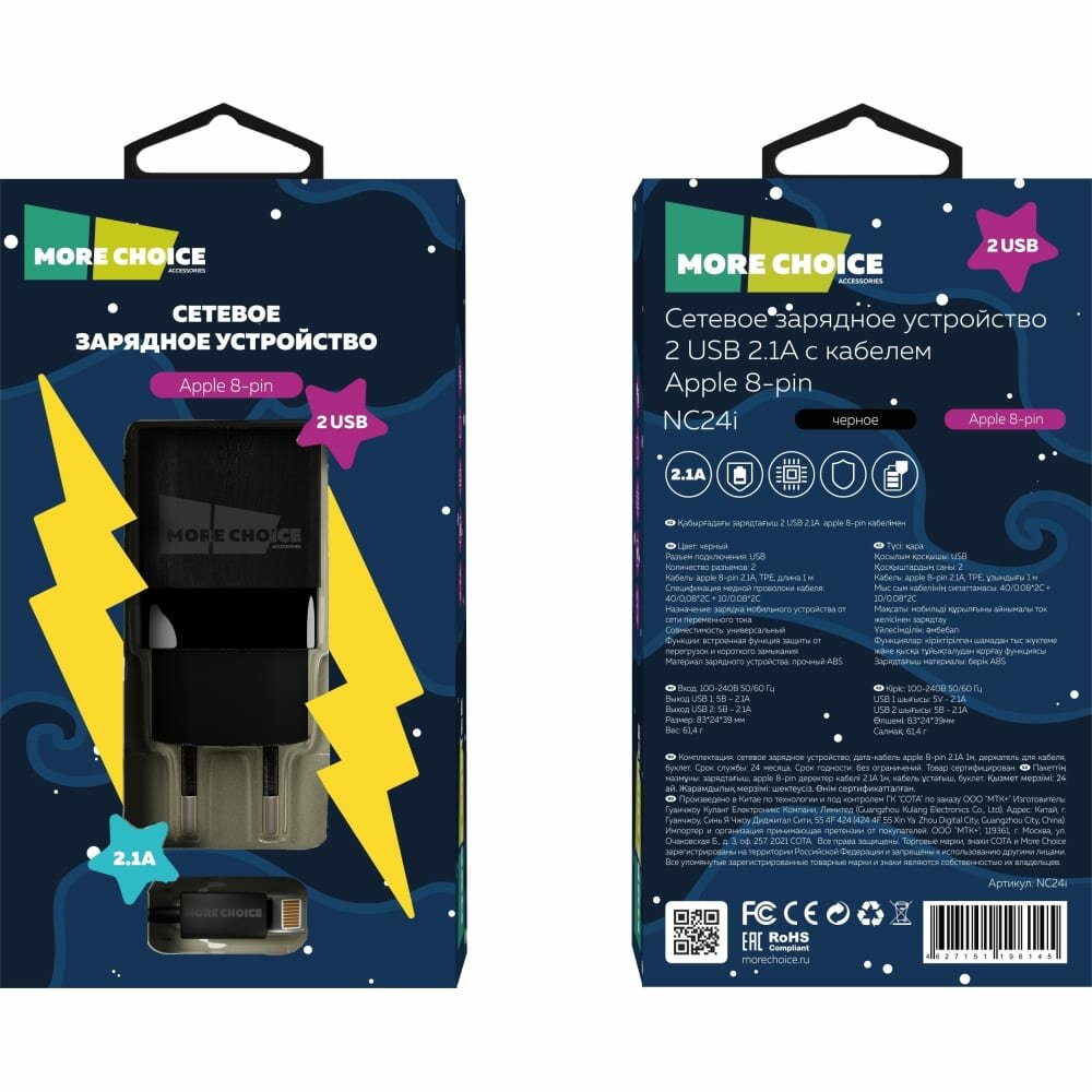 More Choice - универсальное сетевое зарядное устройство. Долговечность обеспечивает отличное качество материалов, из которых выполнено ЗУ. С More choice вы можете быстро и безопасно заряжать любое устройство.