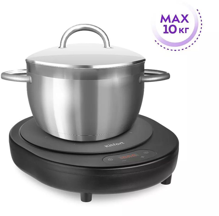 Индукционная плита КТ-157 – ваш лучший помощник на кухне. Приготовление любимых блюд станет простым и безопасным. Индукционная плита позволяет избежать возникновения огня, дыма и гари, поэтому её использование будет максимально комфортным. Используя сенсорную панель управления, вы можете настроить нужный нагрев до 2700 Вт и таймер до 24 часов. Для безопасности в плите встроена функция автоотключения: если плита не получает никаких команд в течение 3 часов, она автоматически отключается. Рабочая поверхность плиты не нагревается непосредственно во время приготовления пищи. При этом происходит мгновенный нагрев из-за контакта с разогретым дном посуды. А если убрать посуду с поверхности, нагревание немедленно прекратится. Для плиты КТ-157 подходит посуда с дном из ферромагнитных материалов: стальная, чугунная, эмалированная посуда, посуда из нержавеющей стали, а также любая другая, предназначенная для индукционного нагрева. Плита выдерживает вес не более 10 кг. На обратной стороне КТ-157 встроены вентиляторы, которые способствуют быстрому охлаждению плиты во время интенсивной работы и после её завершения. Если же дно посуды перегрелось, и температура поверхности достигла 320°C, плита автоматически выключится. С плитой КТ-157 можно не ждать остывания поверхности, чтобы очистить её от остатков еды и загрязнений. Поскольку поверхность индукционной плиты не нагревается, вы можете легко и быстро навести порядок на кухне сразу после приготовления любимого блюда!