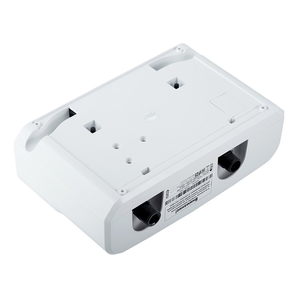 Водонагреватель для настенного монтажа с нижней подводкой коммуникаций. В комплекте: кран, душевой шланг и насадка. Выдерживает давление до 8 бар. Подключение — к 1 водозаборной точке. Есть автоматическое отключение при перегреве и кнопочное управление. Нагревает воду до 55 °C. Мощность: 5 кВт. Степень защиты: IP25.