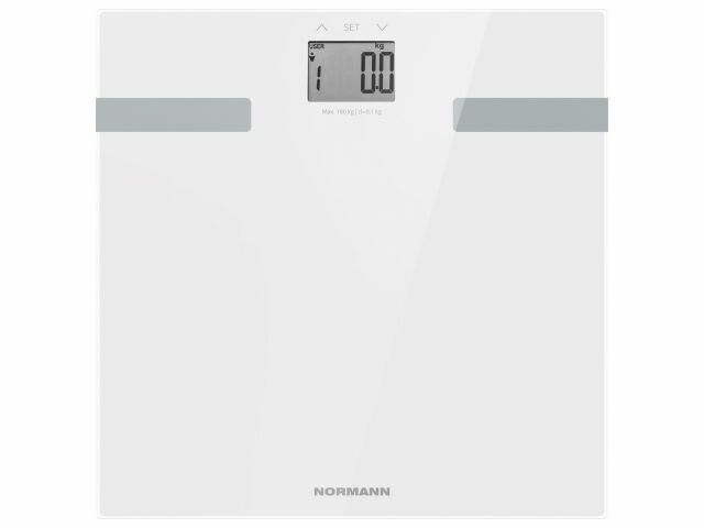 Весы напольные NORMANN серии Super slim позволяют производить измерения массы тела человека, а также измерения уровня воды, жира, мышечной и костной массы с помощью специальных электродов. Измеренный результат выводится на цифровом ЖКИ-дисплее. Платформа изготовлена из высококачественного закаленного стекла 6 мм, что обеспечивает максимально прочную конструкцию при минимальной толщине устройства. Большой дисплей с крупными символами позволяет комфортно использовать устройство всем категориям людей. Преимущества: Эргономичный компактный дизайн Функция измерения уровня воды, жира, мышечной и костной массы Большой дисплей Платформа из закаленного стекла 6 мм Выбор единицы измерения Индикация перегрузки Индикация низкого заряда батарей Автоматическое отключение Память параметров до 10 пользователей