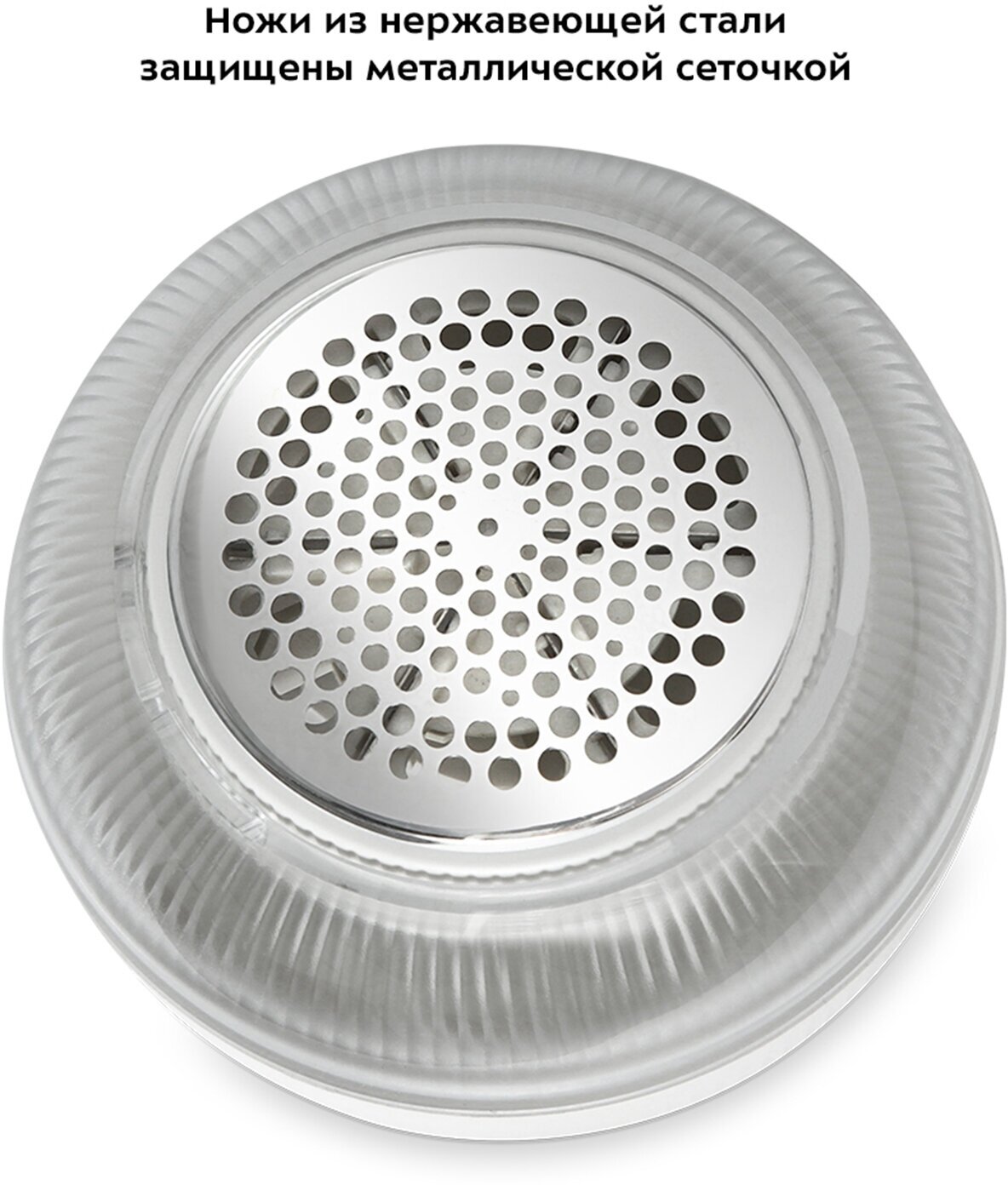 | Комплектация | очиститель катышков, защитная металлическая сетка, блок ножей, контейнер для сбора катышков, шнур USB, руководство по эксплуатации |
