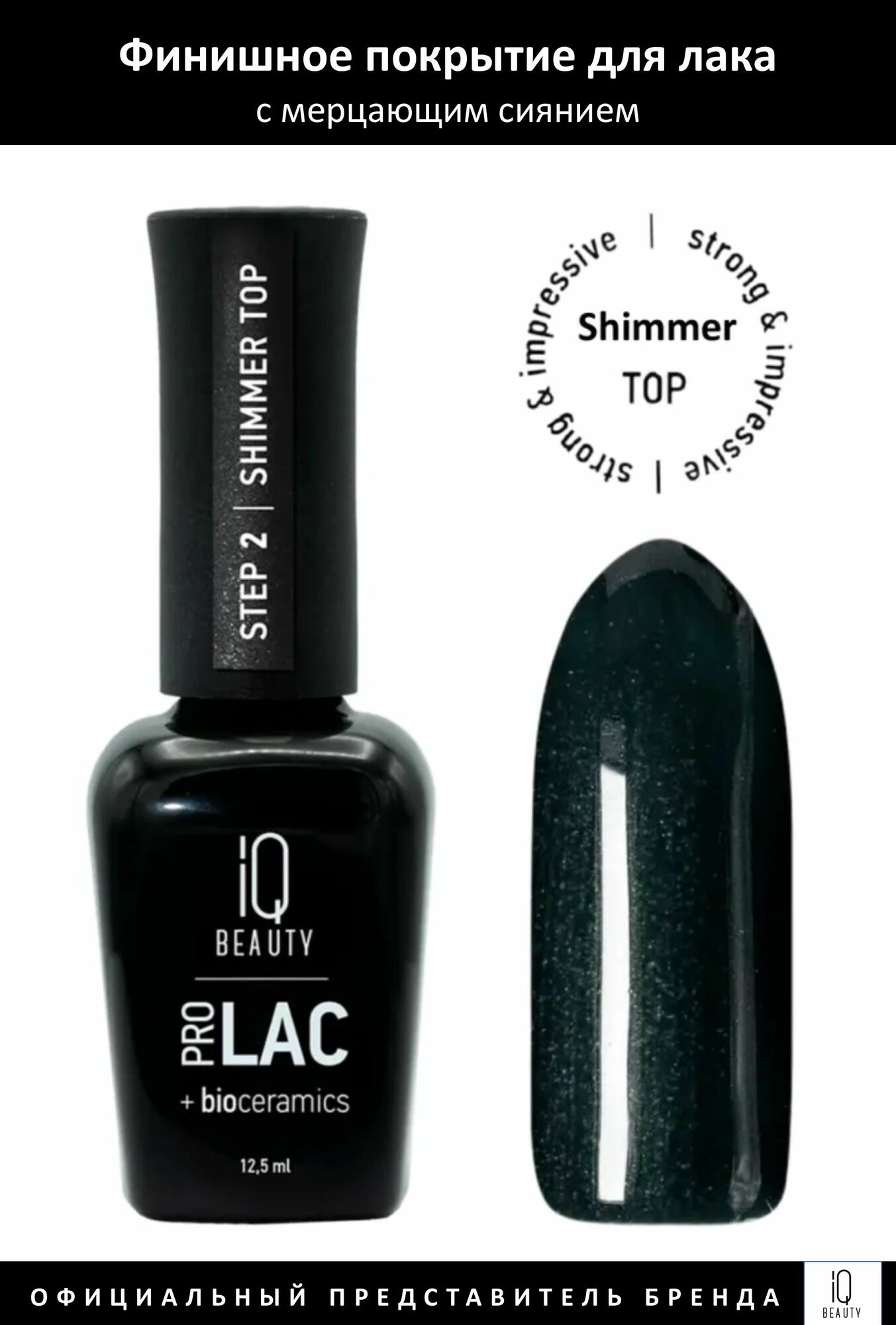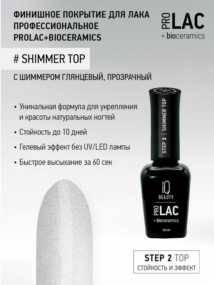 IQ BEAUTY Покрытие финишное для лака профессиональное глянцевое с шиммером / Shimmer top PROLAC + bioceramics 12.5 мл (IQNPTSH)