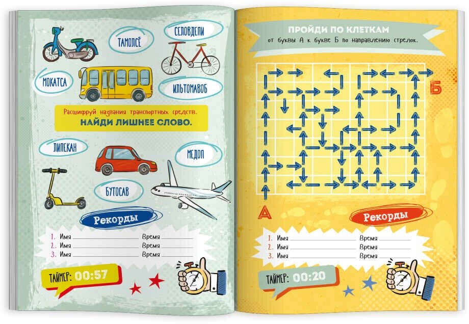 На старт, внимание, марш! Ставь таймер и отгадывай весёлые головоломки за указанное время. Соревнуйся с друзьями и родителями: кто справится быстрее - попадёт в таблицу рекордов!