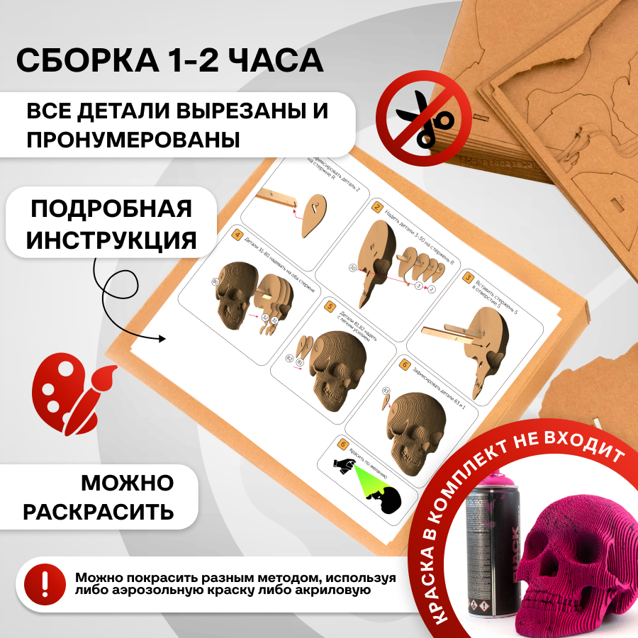 Этот занимательный 3Д конструктор выполнен из гофрированного картона. Все детали сделаны с использованием высокоточной лазерной резки. Каждый фрагмент пронумерован и имеет свой слот. Поэтому по инструкции вы легко соберете всю конструкцию воедино.