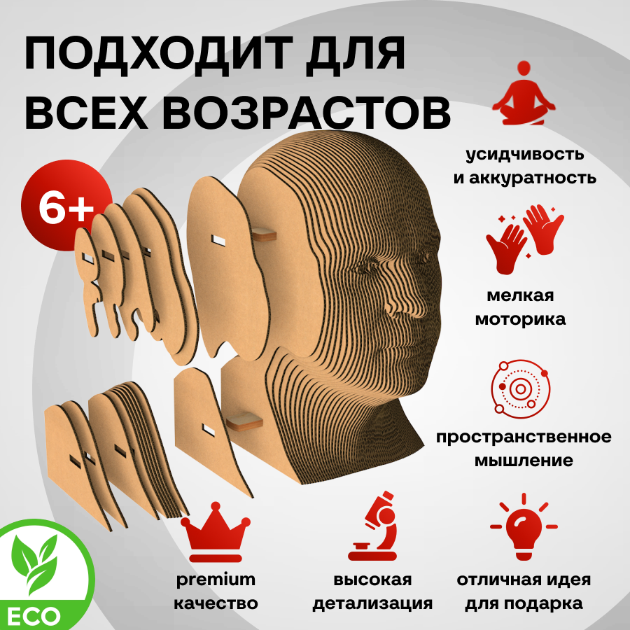 Это оригинальные 3D конструкторы (сборные модели). Каждый комплект изготовлен из пищевого гофрокартона - нетоксичного, экологически чистого материала, пригодного для повторного использования. А каждая деталь вырезана и прономерована при помощи высокоточной лазерной резки. Конструктор легко собрать по прилагаемой инструкции.