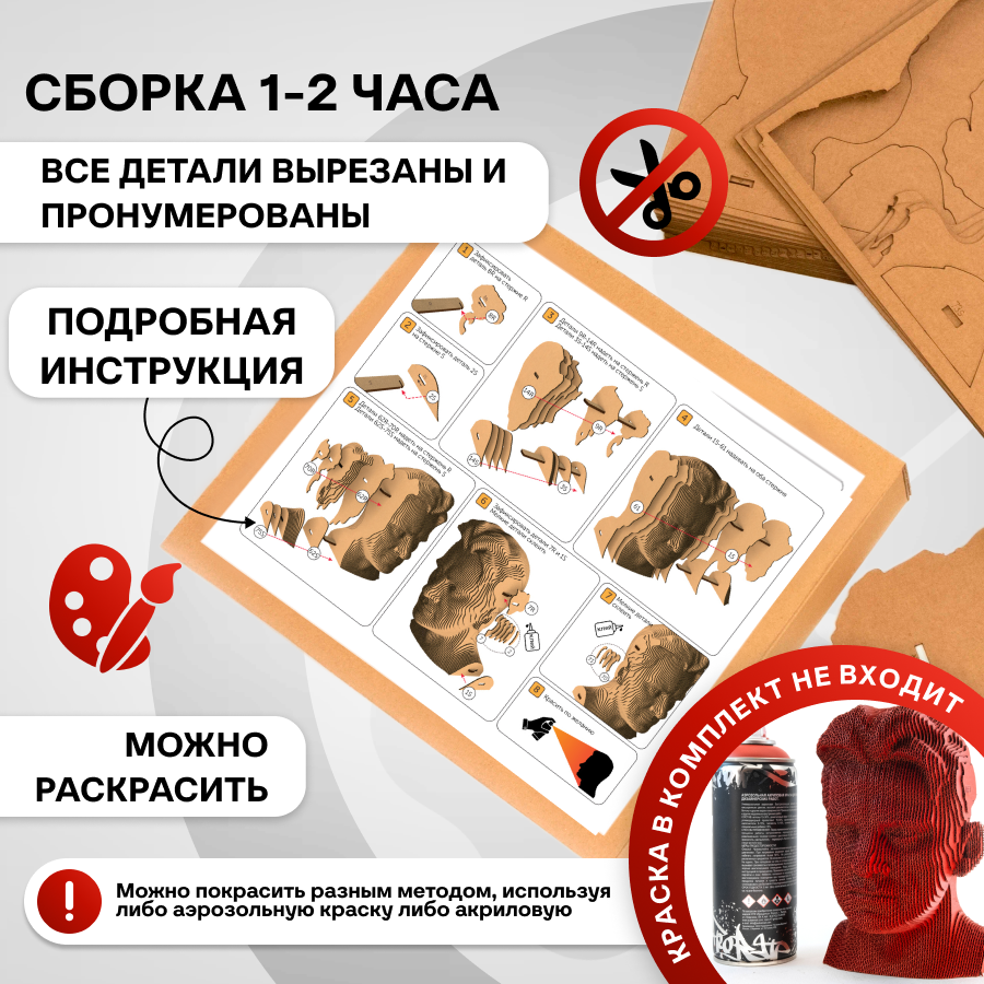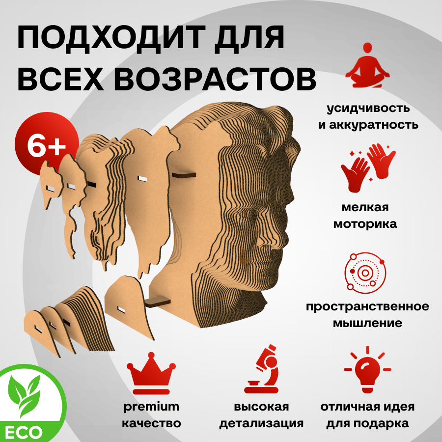 Это оригинальные 3D конструкторы (сборные модели). Каждый комплект изготовлен из пищевого гофрокартона - нетоксичного, экологически чистого материала, пригодного для повторного использования. А каждая деталь вырезана и прономерована при помощи высокоточной лазерной резки. Конструктор легко собрать по прилагаемой инструкции.