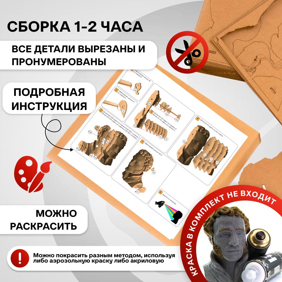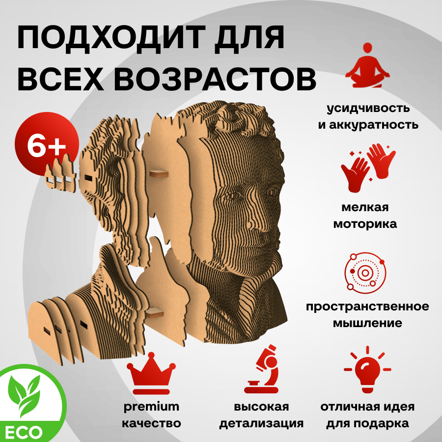 Это оригинальные 3D конструкторы (сборные модели). Каждый комплект изготовлен из пищевого гофрокартона - нетоксичного, экологически чистого материала, пригодного для повторного использования. А каждая деталь вырезана и прономерована при помощи высокоточной лазерной резки. Конструктор легко собрать по прилагаемой инструкции.