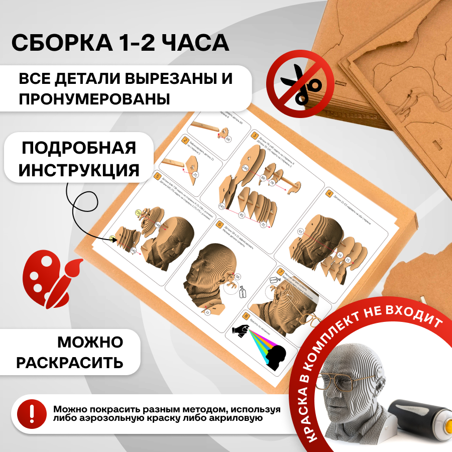Это оригинальные 3D конструкторы (сборные модели). Каждый комплект изготовлен из пищевого гофрокартона - нетоксичного, экологически чистого материала, пригодного для повторного использования. А каждая деталь вырезана и прономерована при помощи высокоточной лазерной резки. Конструктор легко собрать по прилагаемой инструкции.
