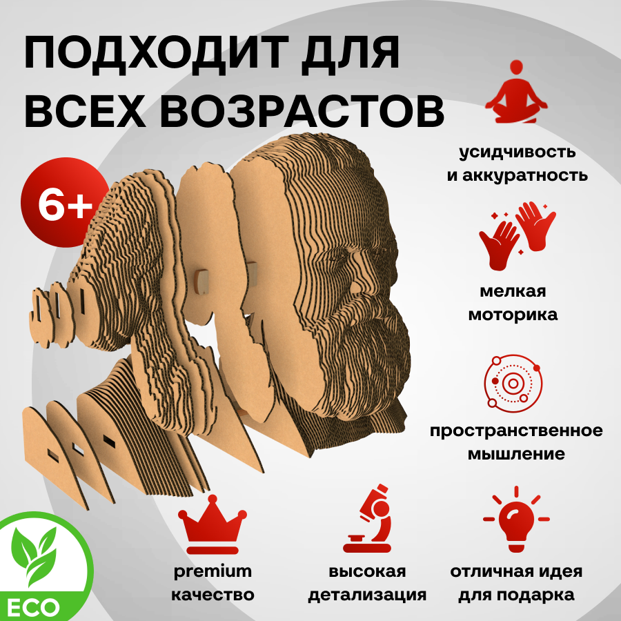Это оригинальные 3D конструкторы (сборные модели). Каждый комплект изготовлен из пищевого гофрокартона - нетоксичного, экологически чистого материала, пригодного для повторного использования. А каждая деталь вырезана и прономерована при помощи высокоточной лазерной резки. Конструктор легко собрать по прилагаемой инструкции.