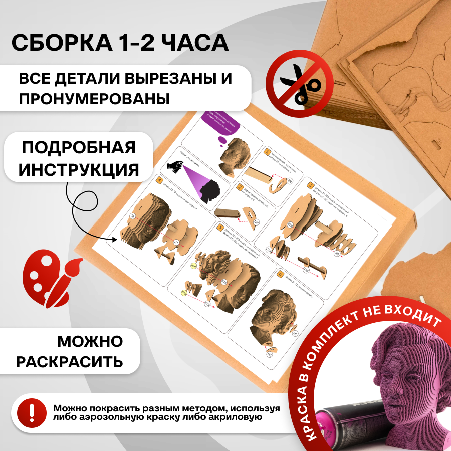 Это оригинальные 3D конструкторы (сборные модели). Каждый комплект изготовлен из пищевого гофрокартона – нетоксичного, экологически чистого материала, пригодного для повторного использования. А каждая деталь вырезана и прономерована при помощи высокоточной лазерной резки. Конструктор легко собрать по прилагаемой инструкции.