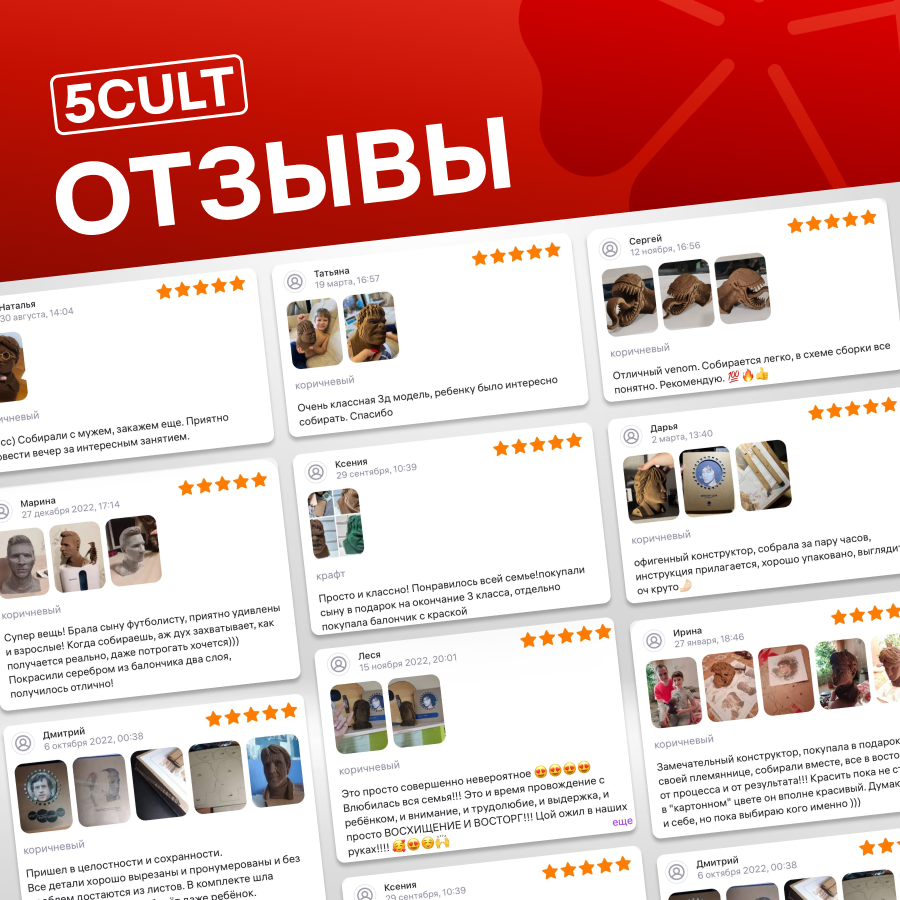 Это оригинальные 3D конструкторы (сборные модели). Каждый комплект изготовлен из пищевого гофрокартона – нетоксичного, экологически чистого материала, пригодного для повторного использования. А каждая деталь вырезана и прономерована при помощи высокоточной лазерной резки. Конструктор легко собрать по прилагаемой инструкции.