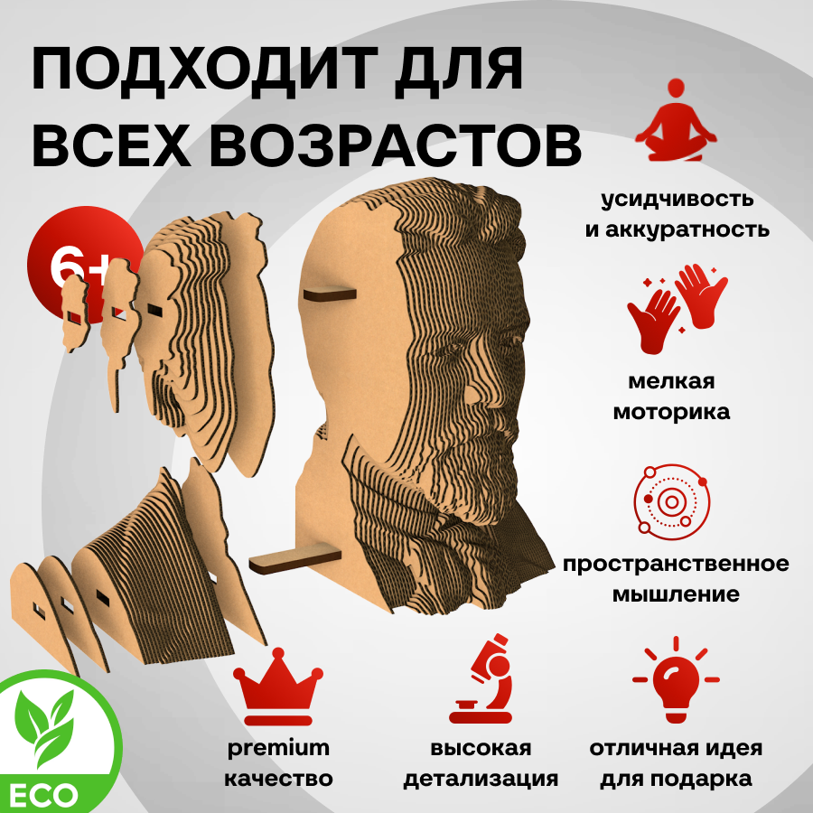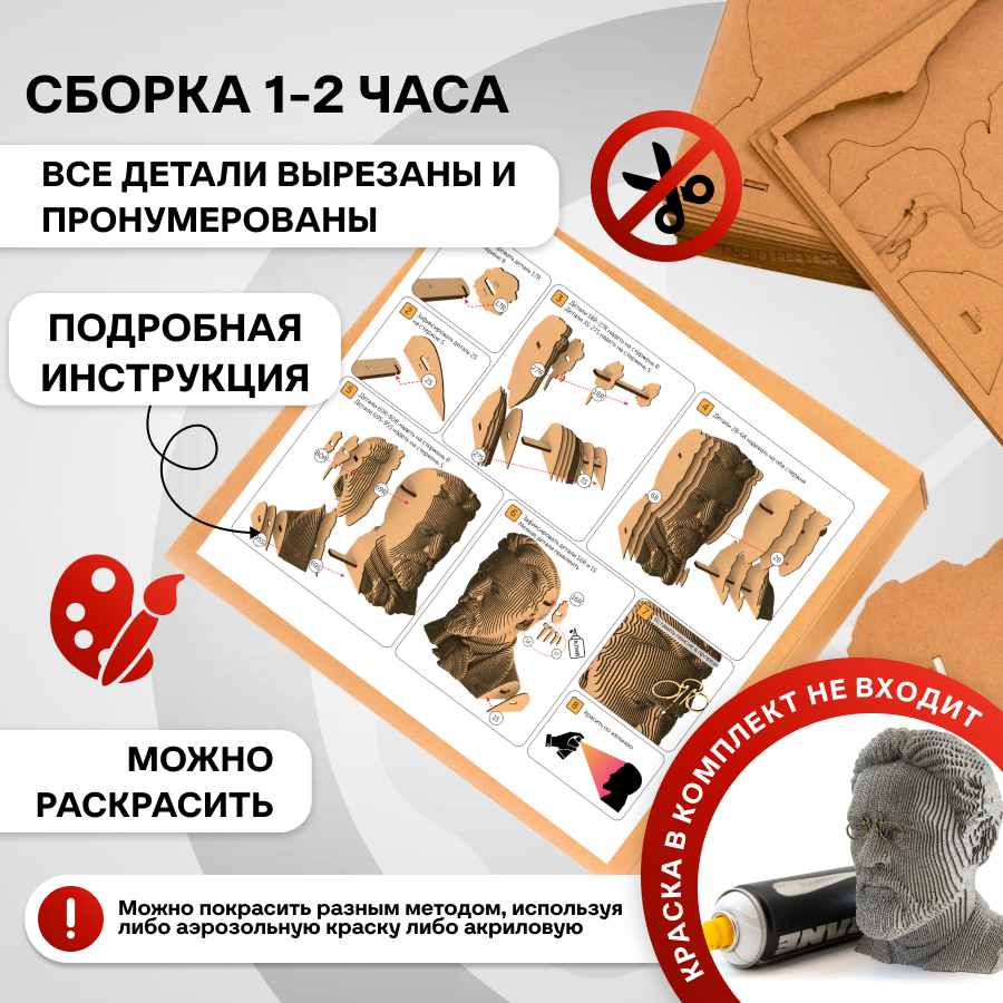 Это оригинальные 3D конструкторы (сборные модели). Каждый комплект изготовлен из пищевого гофрокартона – нетоксичного, экологически чистого материала, пригодного для повторного использования. А каждая деталь вырезана и прономерована при помощи высокоточной лазерной резки. Конструктор легко собрать по прилагаемой инструкции.