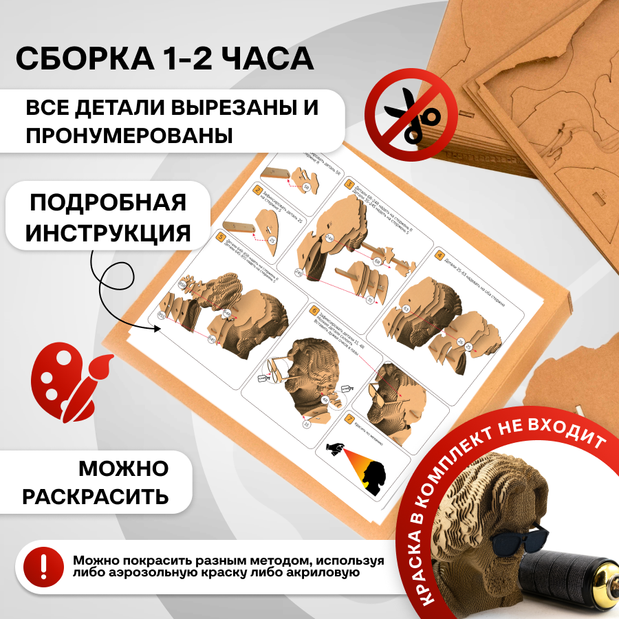Это оригинальные 3D конструкторы (сборные модели). Каждый комплект изготовлен из пищевого гофрокартона – нетоксичного, экологически чистого материала, пригодного для повторного использования. А каждая деталь вырезана и прономерована при помощи высокоточной лазерной резки. Конструктор легко собрать по прилагаемой инструкции.