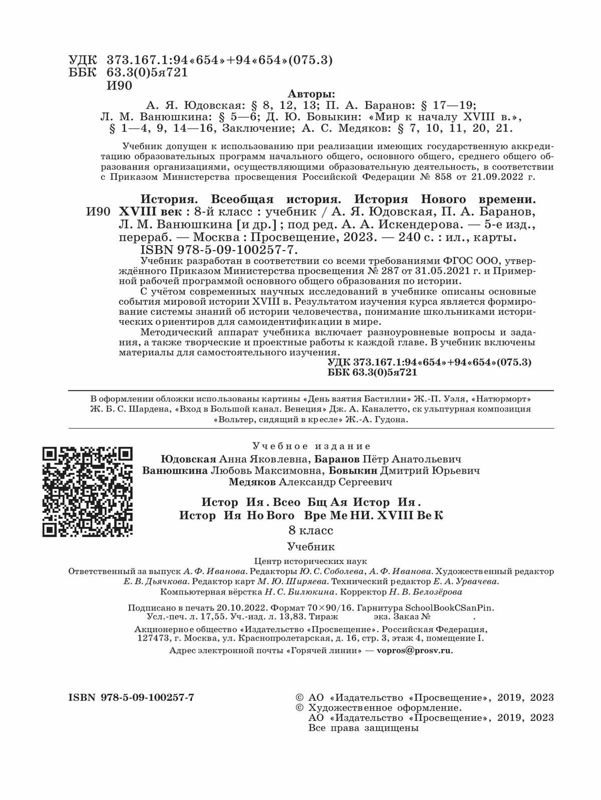 Всеобщая история. История Нового времени. 8 класс. Учебник. ФГОС (Любовь Максимовна Ванюшкина, Анна Яковлевна Юдовская, Пётр Анатольевич Баранов); Просвещение, 2025