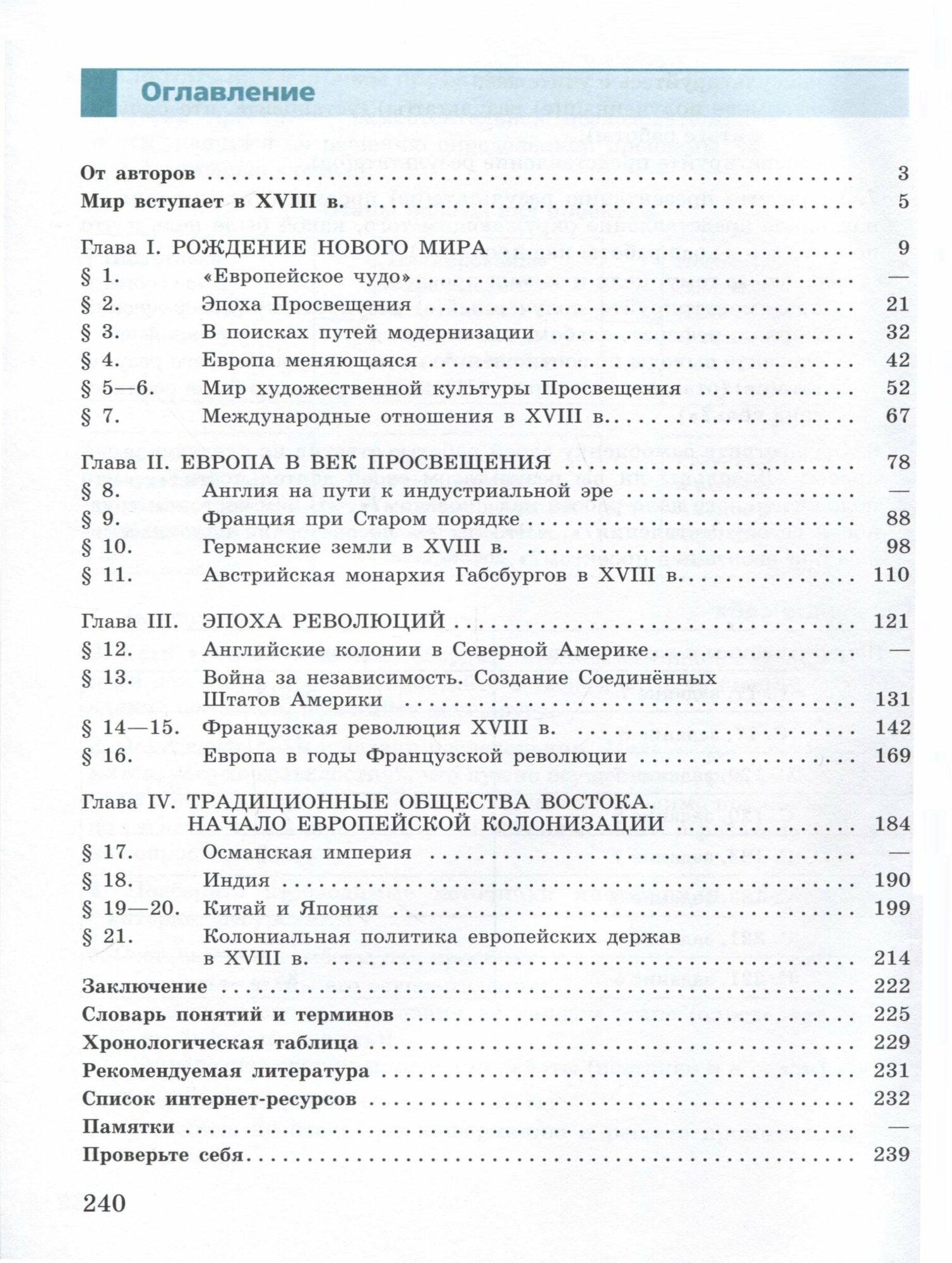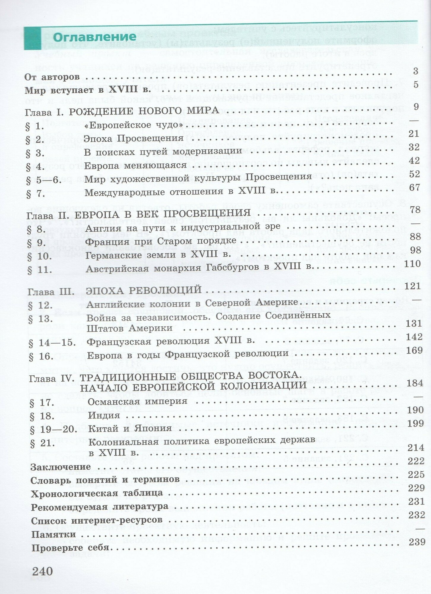 С учётом современных научных исследований в учебнике описаны основные события мировой истории XVIII в. Результатом изучения курса является формирование системы знаний об истории человечества, понимание школьниками исторических ориентиров для самоидентификации в мире.