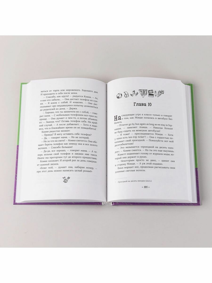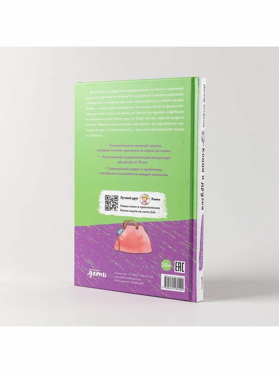 Класс Конни в радостном предвкушении: из Англии приезжают несколько учеников по обмену! Конни удается уговорить родителей, и теперь она с нетерпением хочет познакомиться со своей гостьей. Мэнди — очень необычная девочка: ее волосы торчат острыми иголками в разные стороны, в левом ухе блестят три сережки, а футболка не закрывает пупок! Конни явно не будет скучать, ведь ей придется спасать Мэнди от контролеров в автобусе и от охранника в торговом центре, а также выяснить, с кем она разговаривает ночью по телефону...