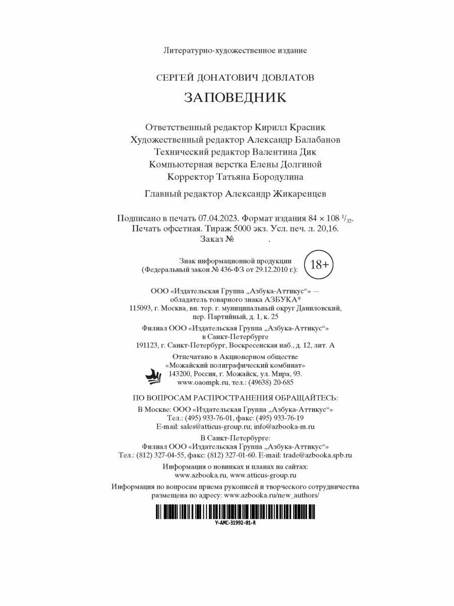 Книга: Заповедник (Довлатов Сергей Донатович); Азбука Издательство, 2023