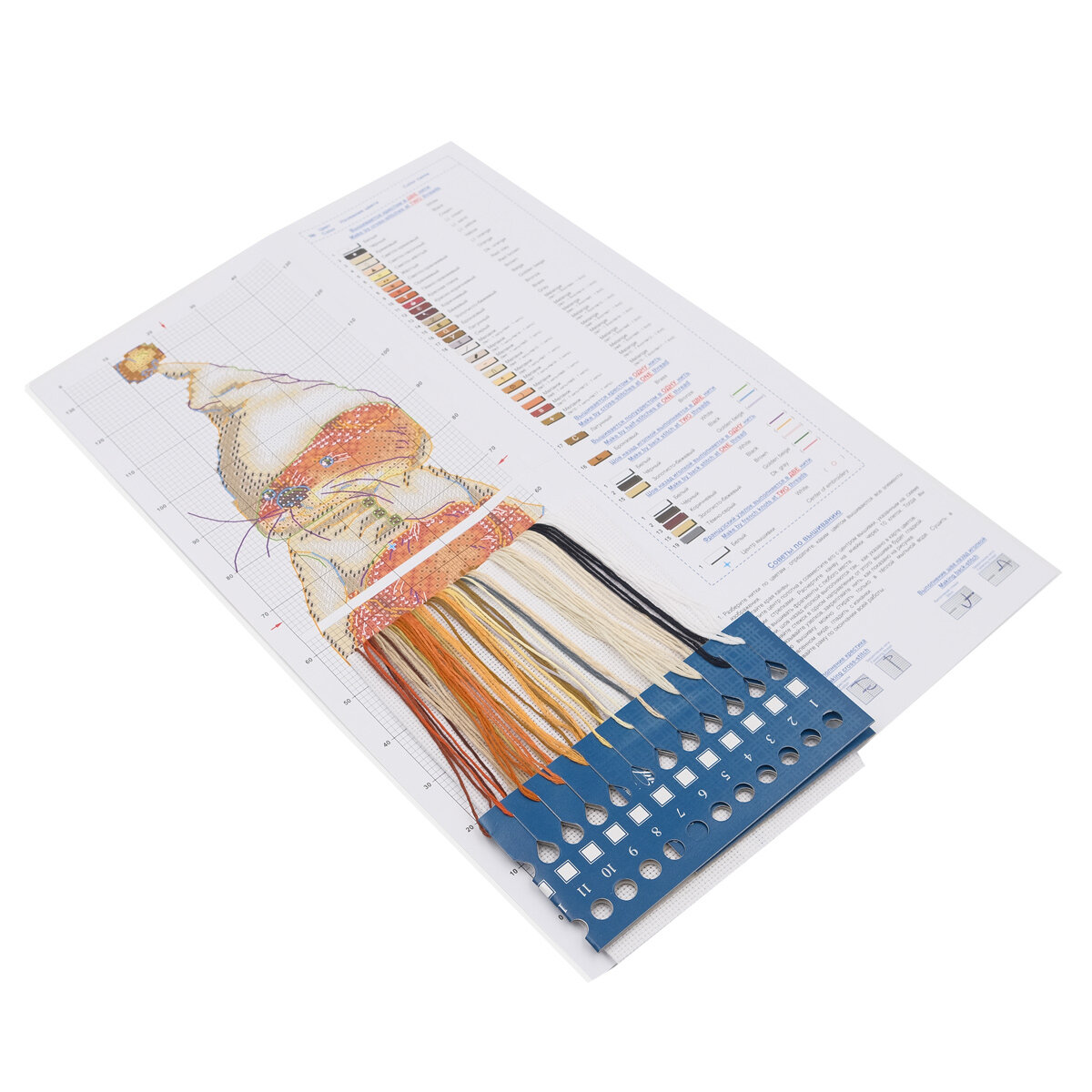 | Комплектация | канва Аида 16 каунт белого цвета; хлопковое мулине 19 цв., разобранное на органайзер; игла; цветная схема; инструкция |