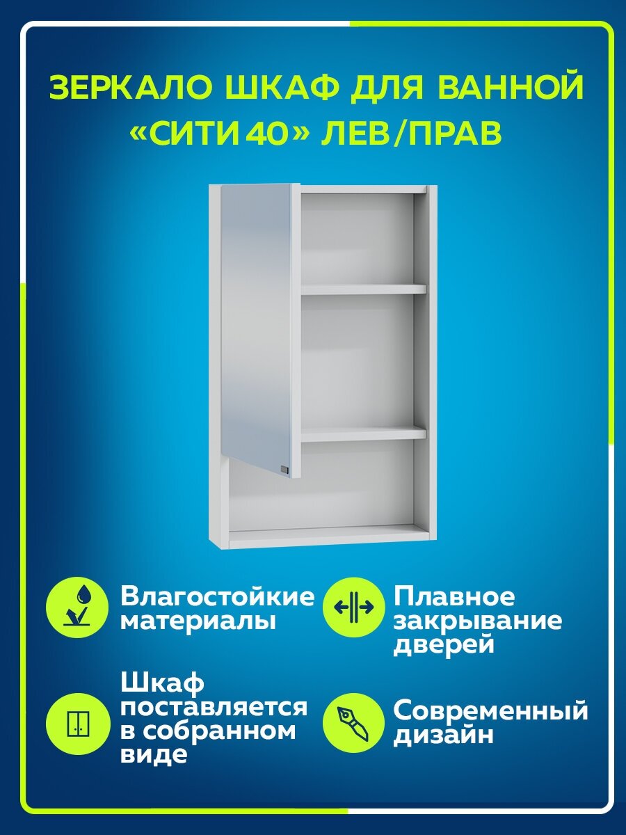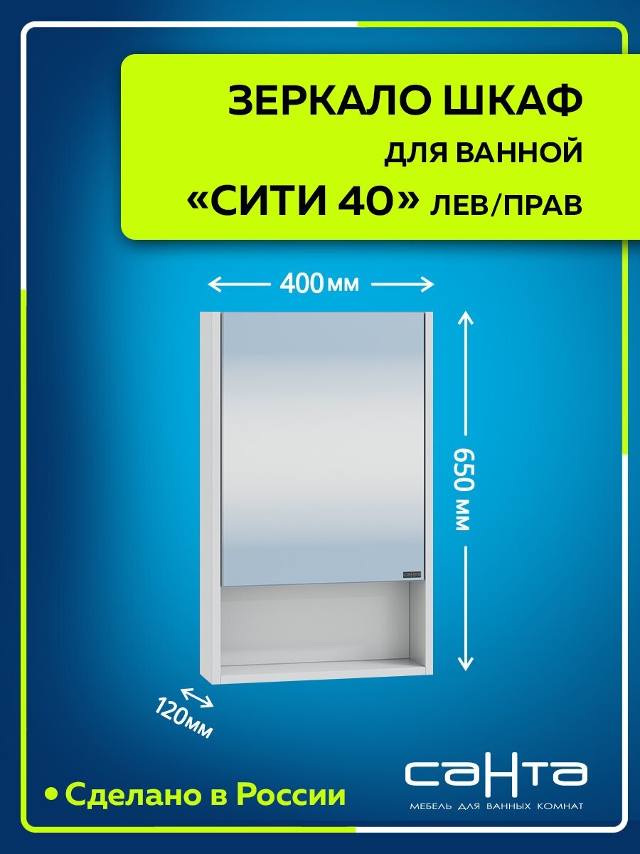 Зеркальный шкаф СаНта Сити 40 700335. Цвет: белый. В комплекте поставки: Зеркальный шкаф. Петли плавного закрывания 1 шт. Полка из ЛДСП - 1 шт.