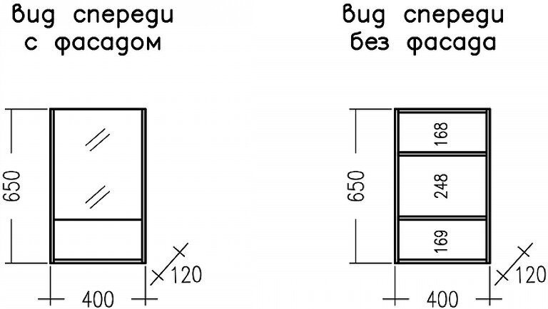 - Габариты (ШхВхГ): 400х650х120 мм.