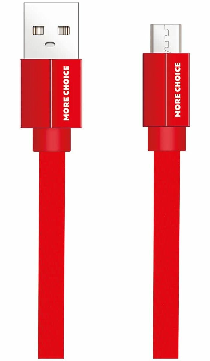 Кабель интерфейсный More Choice USB 2.1A для micro плоский USB нейлон 1м Red K20m