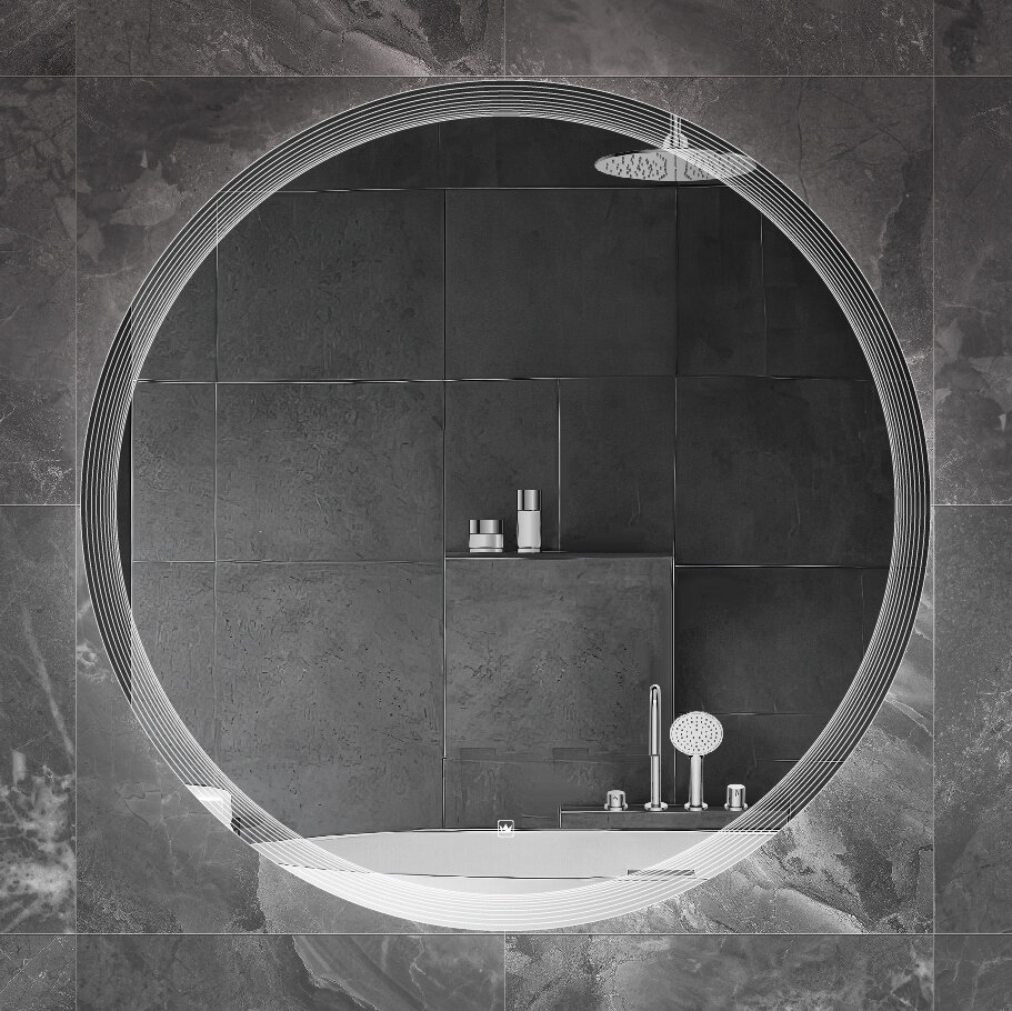 Зеркало с лазерной гравировкой, контурной подсветкой и сенсорным выключателем CZR-SPC-ECO-900-LED-TCH, 12V, 220-240V, 900x30.