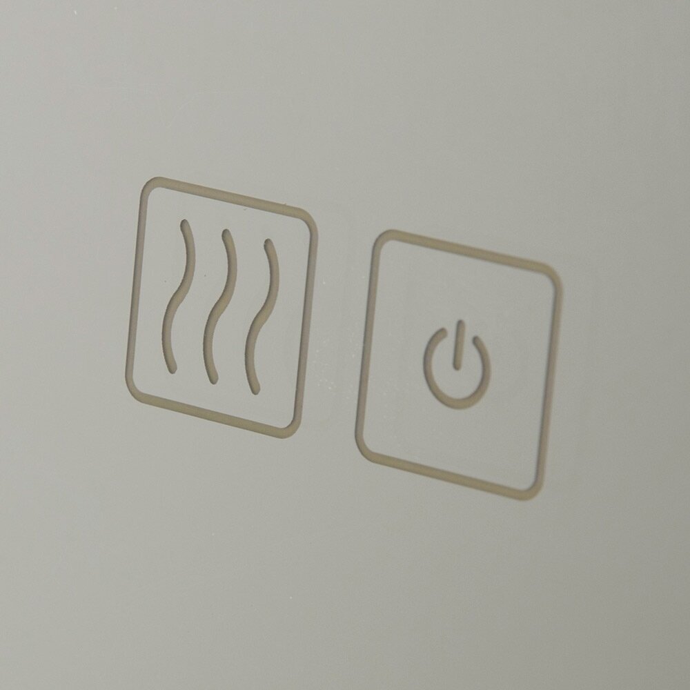 - Оснащение: подогрев зеркала (функция антизапотевания), диммер подсветки (при кратковременном нажатии выключение и включение подсветки, при длительном плавное изменение яркости).