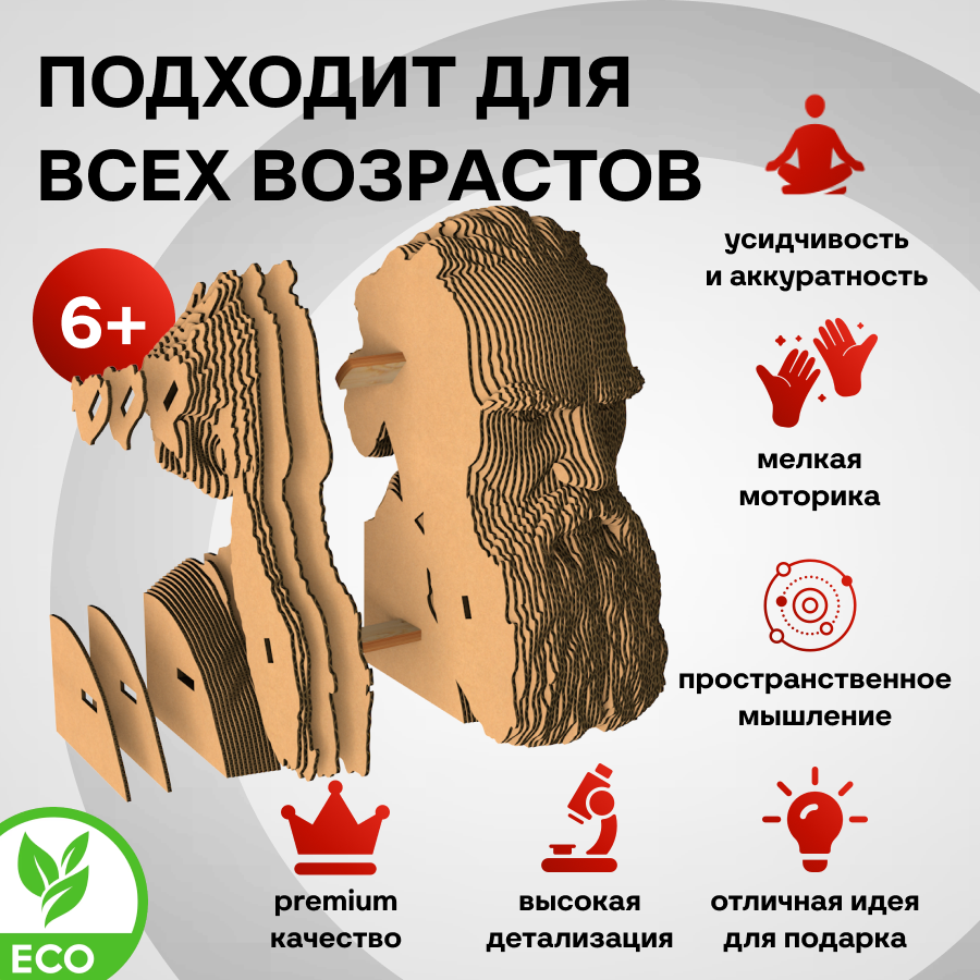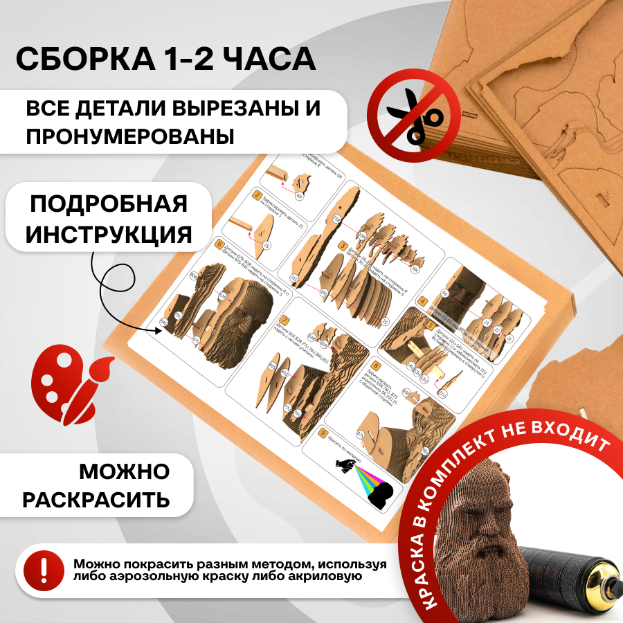 Это оригинальные 3D конструкторы (сборные модели). Каждый комплект изготовлен из пищевого гофрокартона - нетоксичного, экологически чистого материала, пригодного для повторного использования. А каждая деталь вырезана и прономерована при помощи высокоточной лазерной резки. Конструктор легко собрать по прилагаемой инструкции.